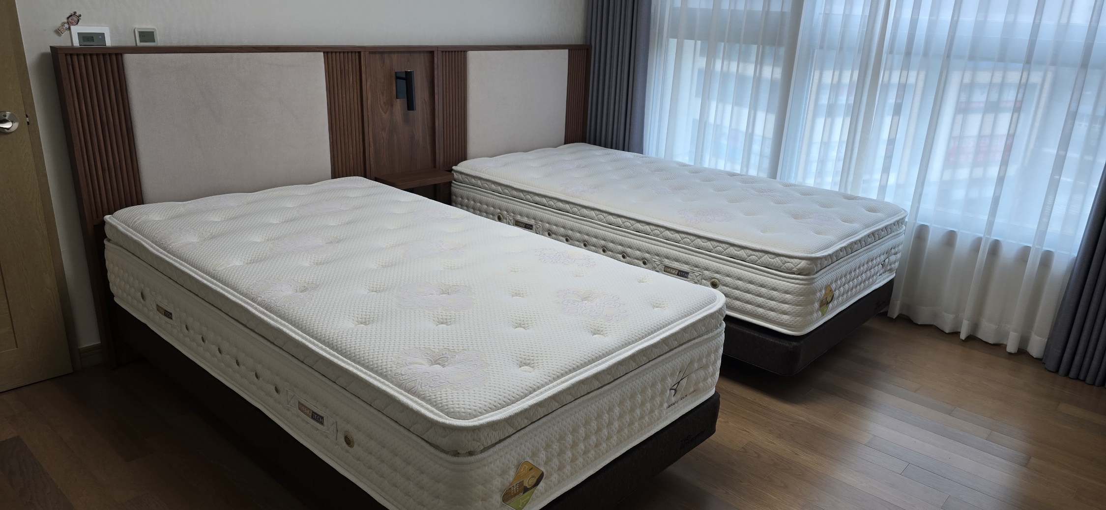 NOVELLA는 입체적인 템바보드와 부드러운 패브릭 쿠션의 조화로 완성된 모던 디자인의 침실입니다.