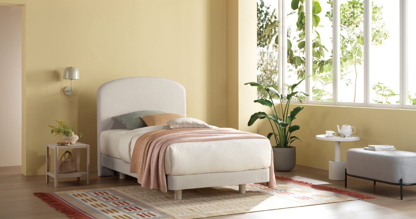 클라우드 화이트의 아늑함으로 공간을 부드럽게 감싸는 싱글 침대