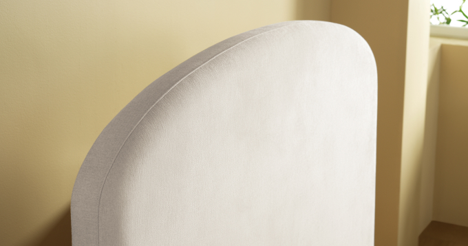 둥근 라운드 쉐입과 클라우드 화이트 패브릭이 어우러진 싱글 침대로, 침실에 포근하고 아늑한 분위기를 더합니다.