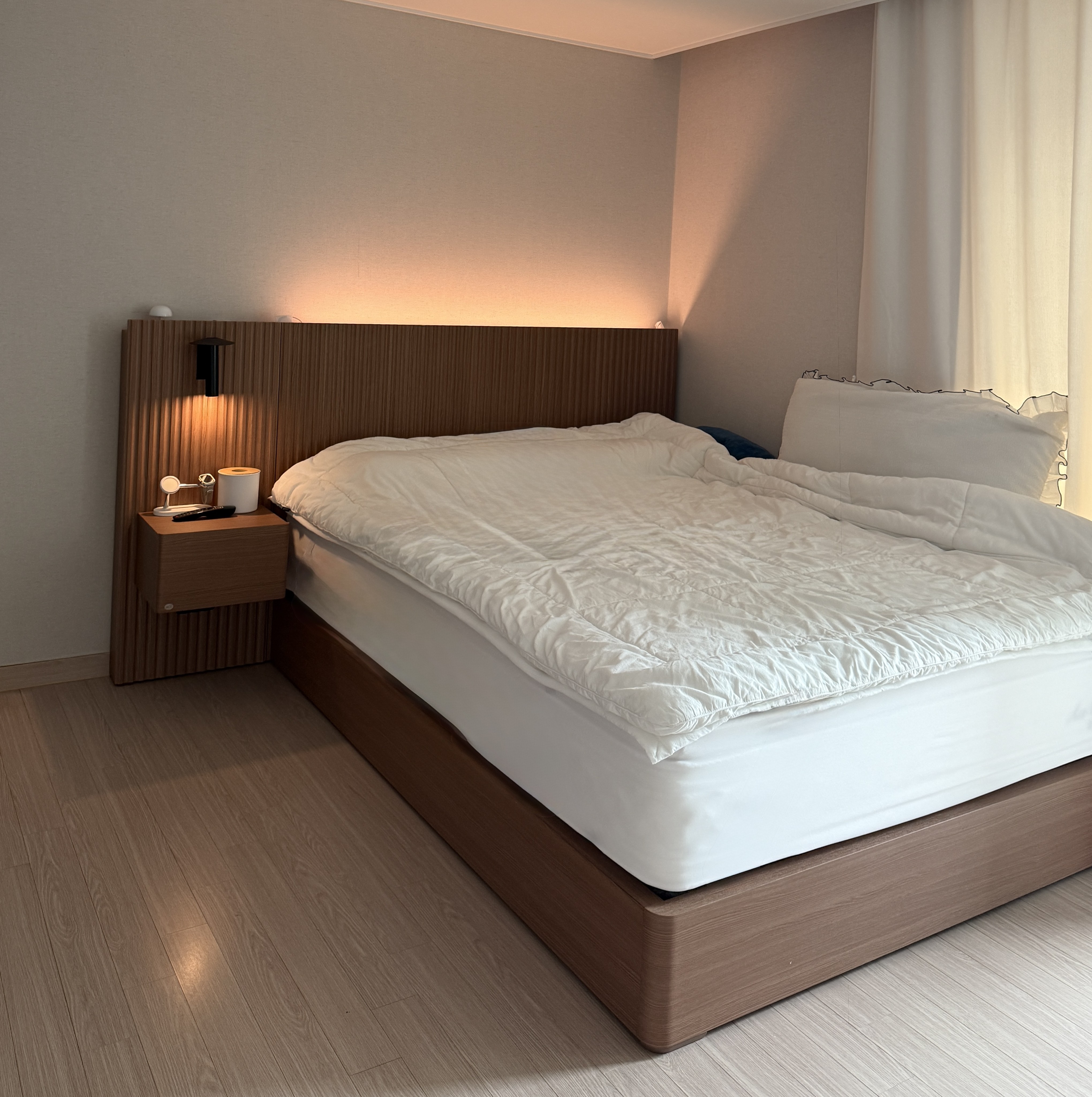 헤드보드와 동일한 소재와 패턴을 가진