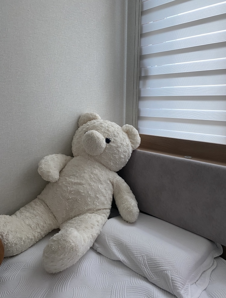 폭신폭신하다고 아이는 말하며 키만한 곰돌이랑 매일 같이 잔다 ㅋ 이사와서 잠자리를 독립시켰는데 잘 적응하고 있다 자기방에서 자는걸 좋아하는것 같다 ^^