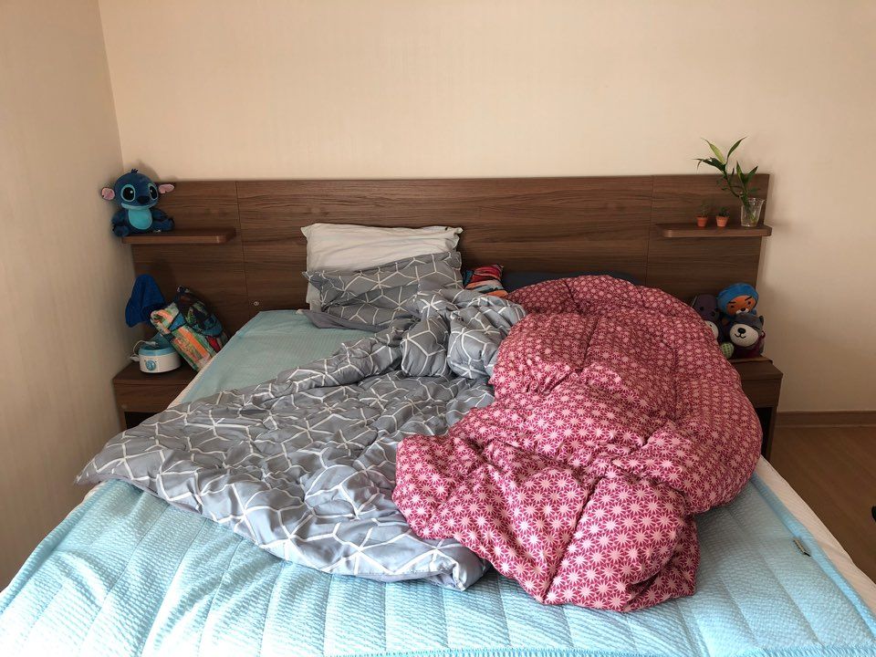 다만, 지금 기존에 사용하던 Q 매트리스용 이불들을 사용하다보니 킹사이즈에는 못미치네요. 얼른 구매해야겠어요.
