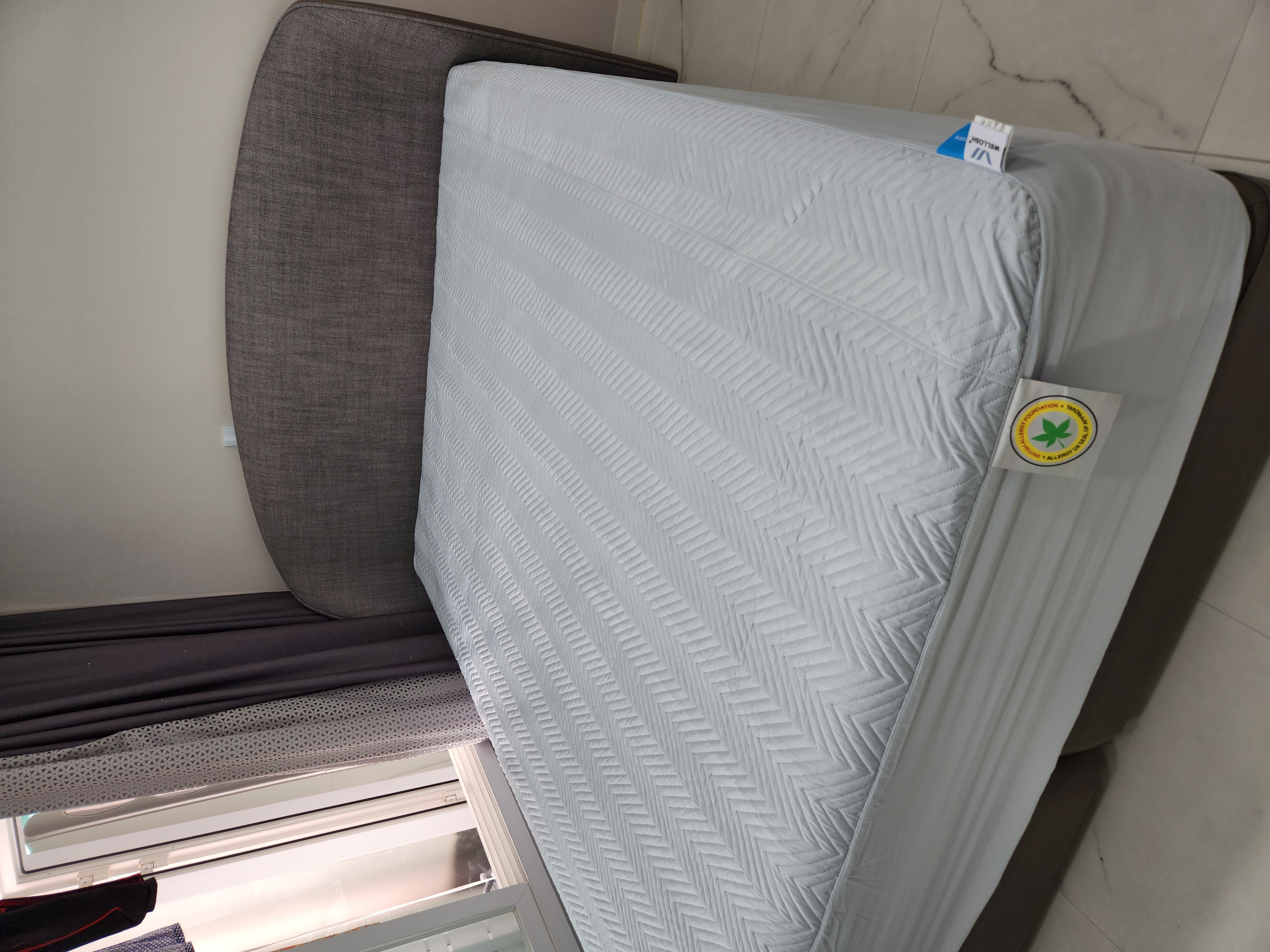 매트리스는 남편 허리에 가장 편안한 모델로 구입했고 프레임은 제가 좋아하는 디자인으로 구매하고 싶어서 자나모델 그레이로 선택했습니다.