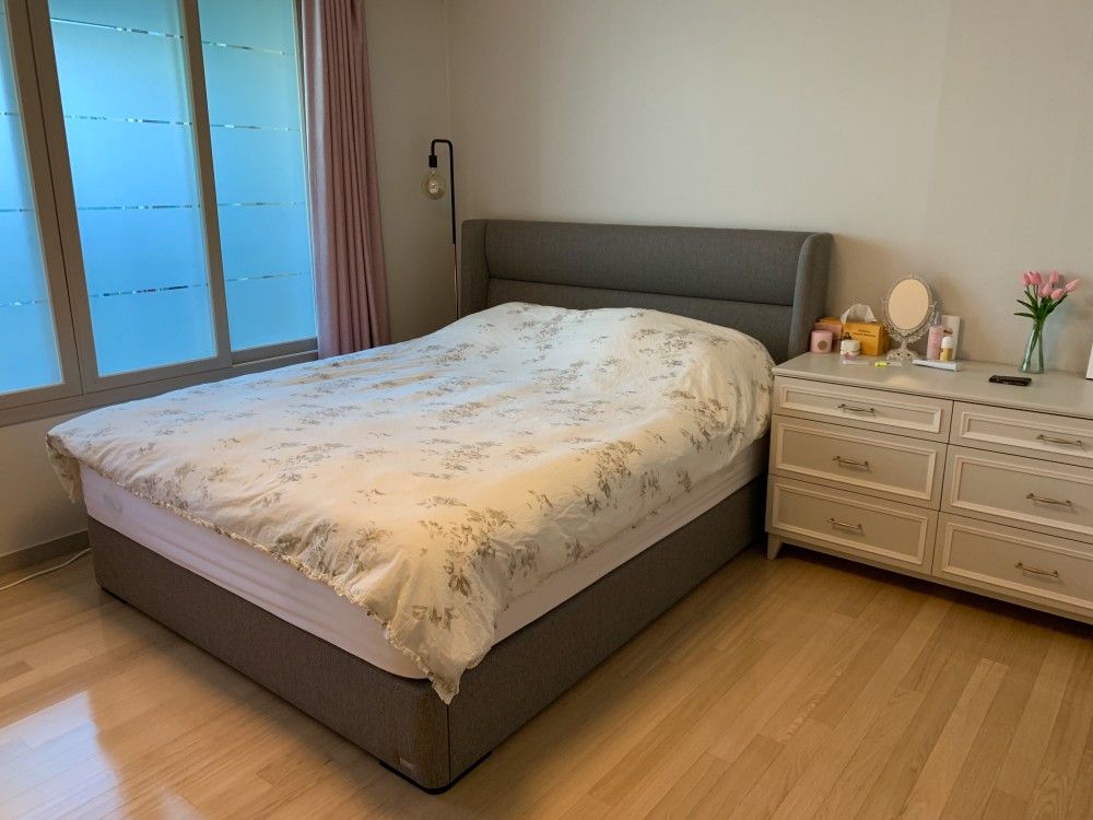 침대는 높지만 헤드가 납작하여 공간차지 느낌이 안들어요 남편도 저도 정말 만족합니다!!!