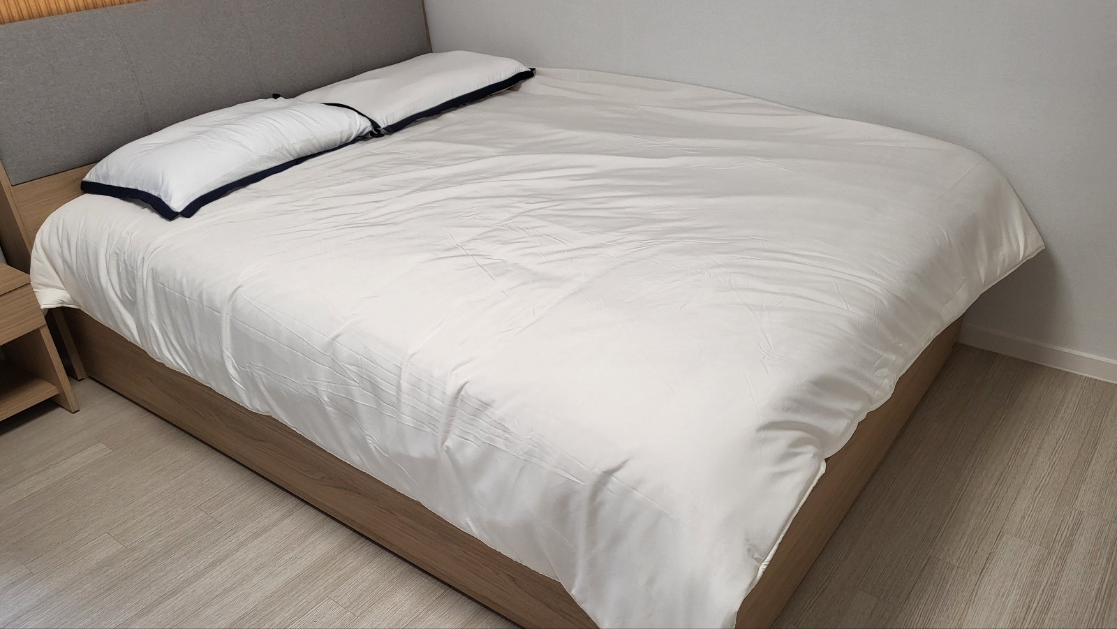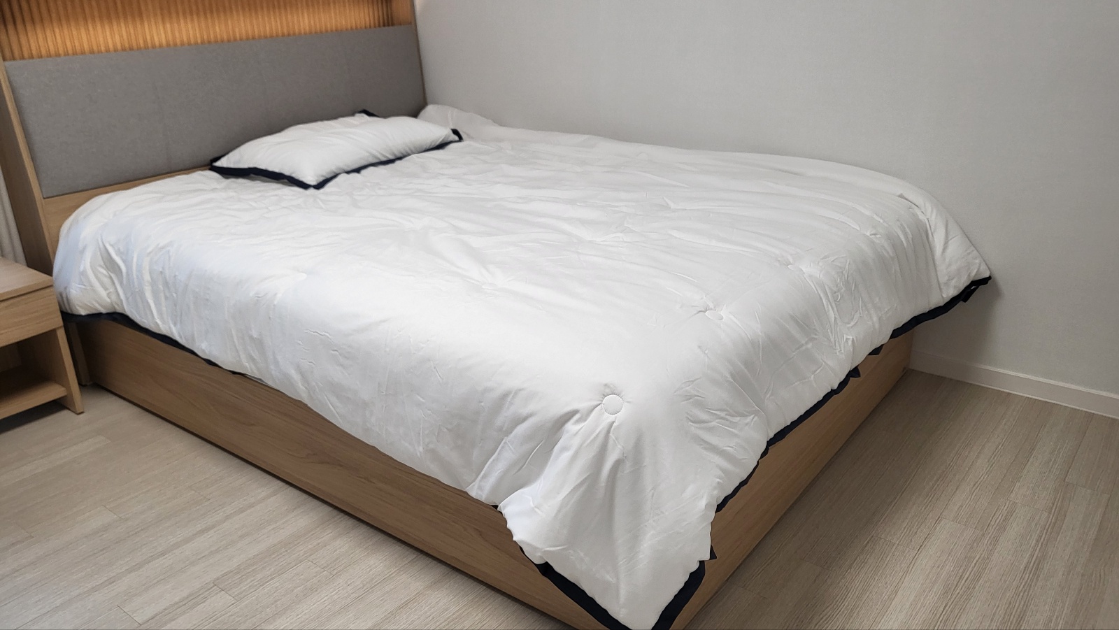 입주일에 침대를 설치하고 같이 보내주신 침구로 세팅해봤는데 일단 외관적으로 매우 만족스러웠습니다.