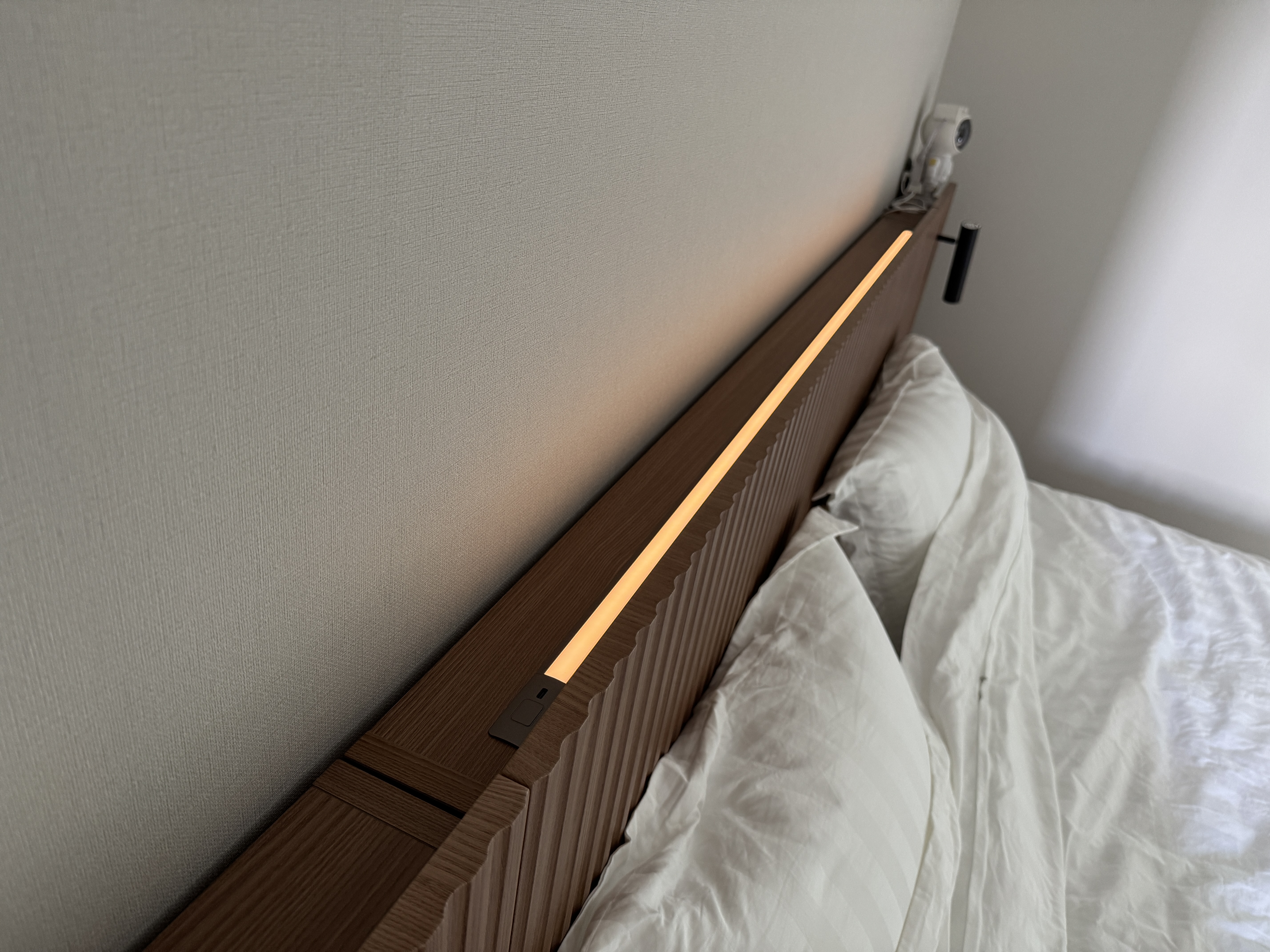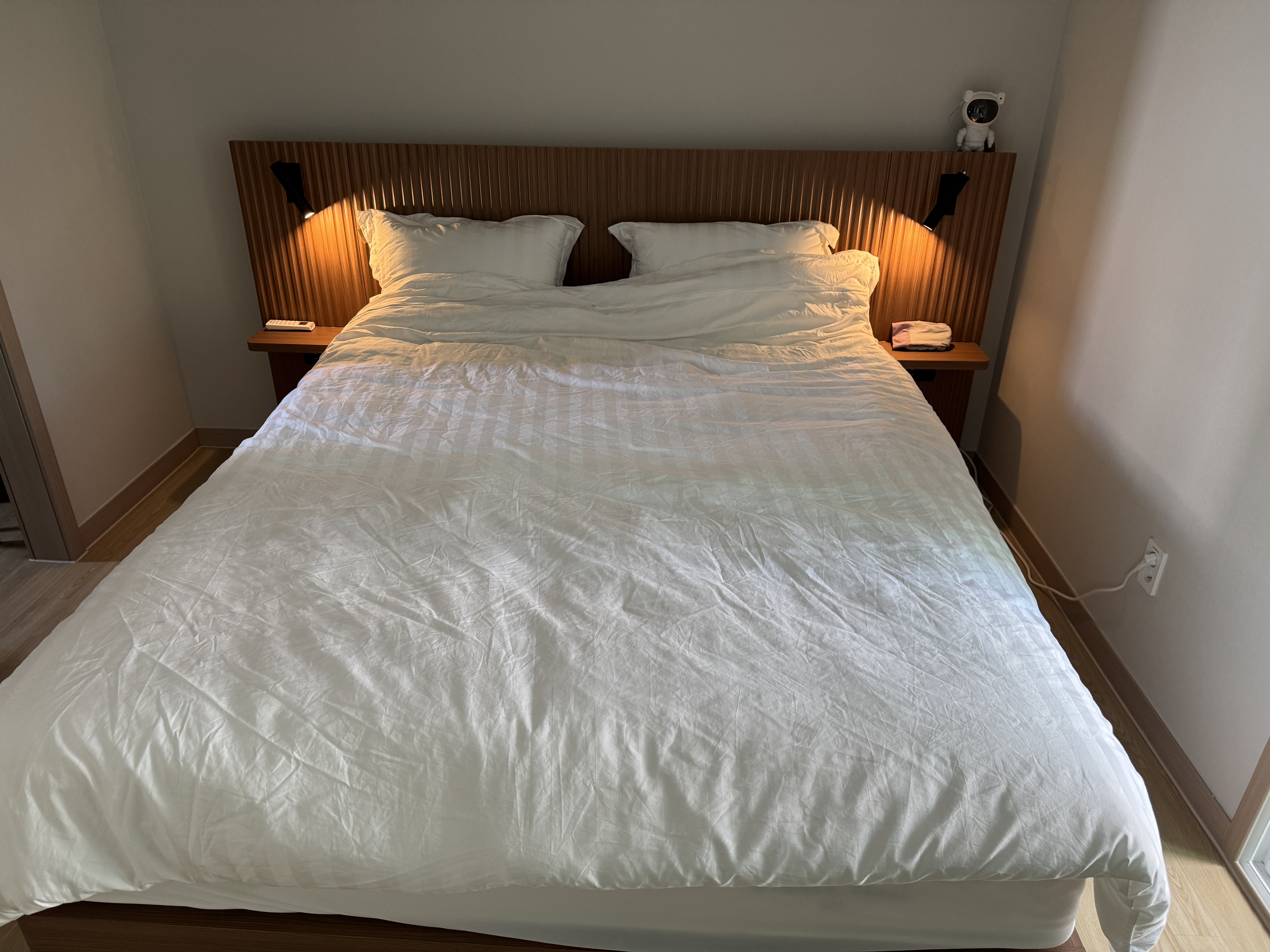 볼수록 예뻐서 뿌듯합니다 매트리스도 너무 편해서 잘 자고 있습니다 양 사이드에서 불 나오는 것도 생각보다 활용도가 좋아서 너무 잘 쓰고 있어요 손님 오실때마다 침대 예쁘다고 해서 더 뿌듯해요 매장가서 여러개 봤는데 딱 꽂혔던 제품인데 실제로 집에 설치하니 더 만족합니다 고급지면서 아늑한 느낌 들고 오래 써도 질리지 않을 디자인이라 저 좋네요 28평 아파트 안방에 킹사이즈 넣은건데 양쪽으로 공간도 딱 좋게