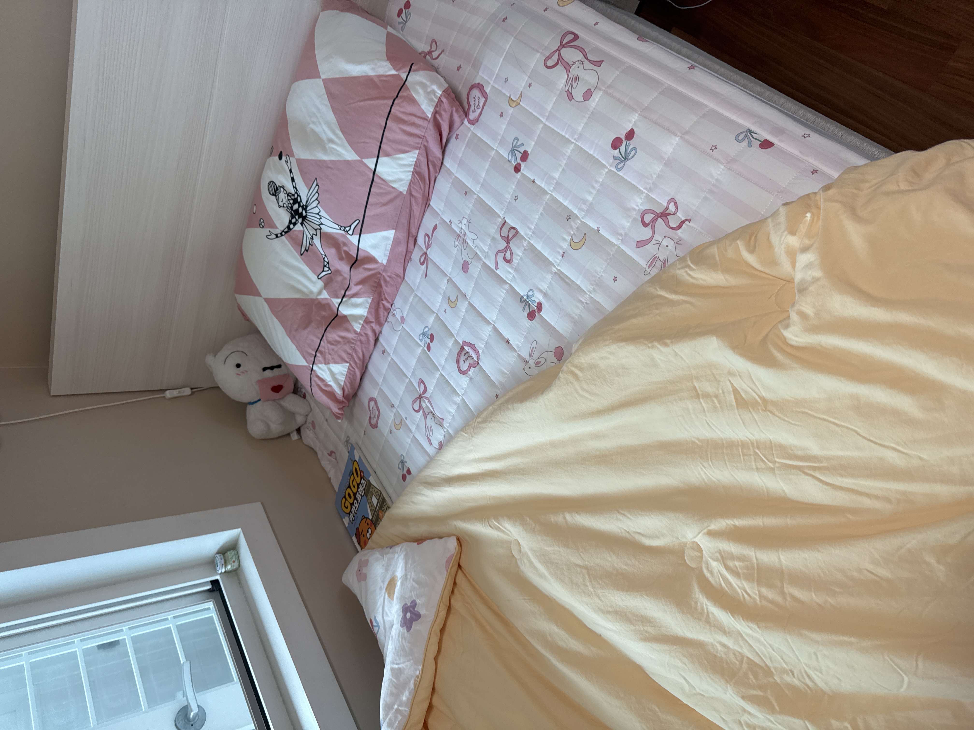 초등학교 2학년 된 여학생이예요. 유아용 침대 사용하다가 안방에서 사용중인 벨라 매트리스를 너무 좋아해서 이번에 바꿔줬어요. 안방에서 사용하는 벨라 슈퍼싱글로 바꿔주려고 했는데 매장에서 누워보고는 로얄90s 로 결정하게 됐어요. 포근함이 다르다고 하네요. 아마 여학생이라 더 소프트한 걸 선호하나봅니다. 사용한지 열흘 좀 지났나? 더 이상 안방에 찾아오지 않아요. 안방 침대보다 자기 침대가 더 좋은가봅니다. 조금 서운하기도 하고 홀가분하기도 하네요.매트리스 커버를 사은품으로 주셔서 유용하게 사용중이예요. 매트리스가 시중에 다른 매트리스 보다 높아서 맞춤 제작해야하는 번거로움이 있더라구요.