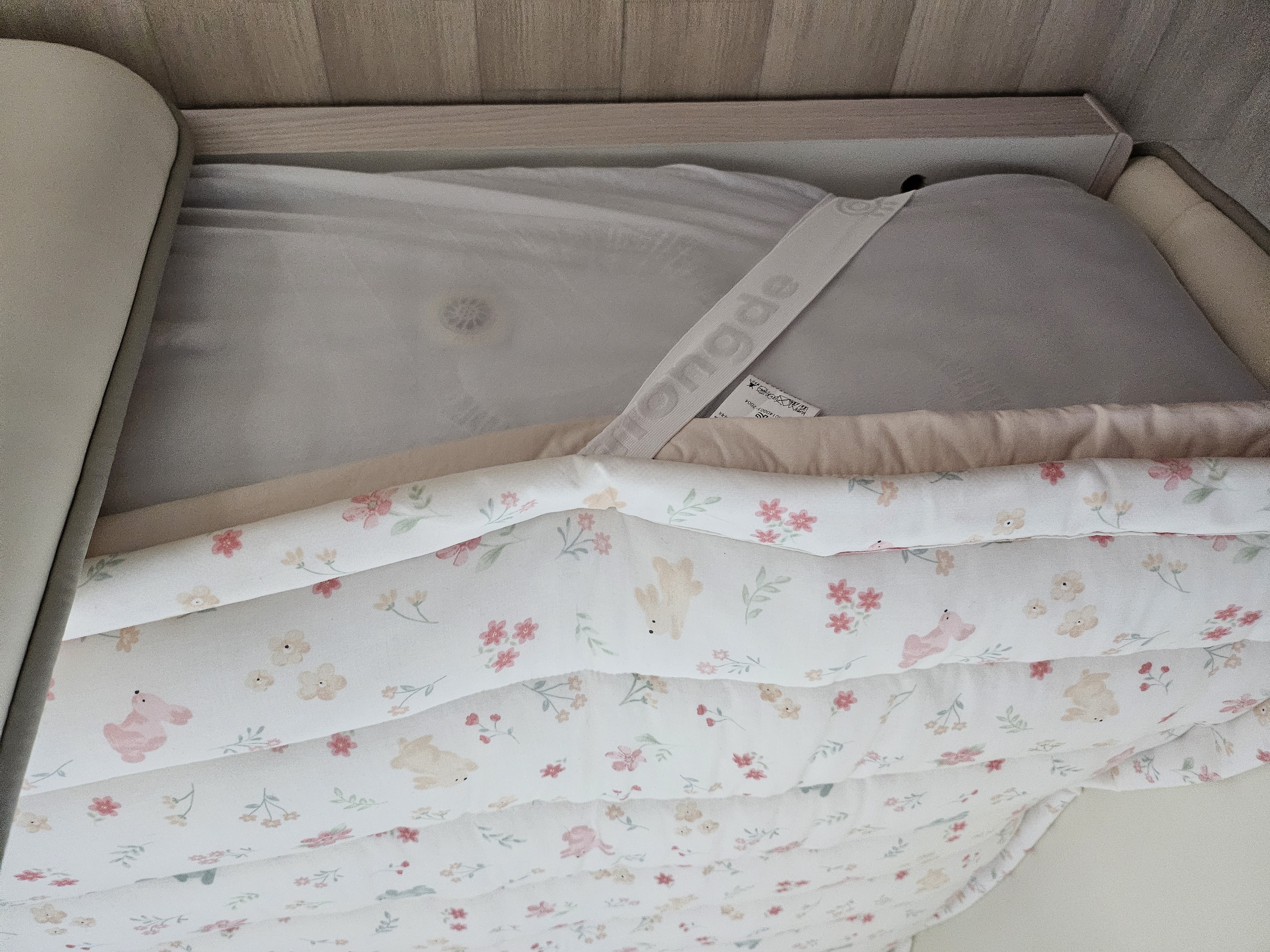 슈퍼싱글 사이즈는 아기와 성인한명이 눕기에 충분하네요. 아기가 새보금자리에서 편안히 잤으면 좋겠습니다:)
