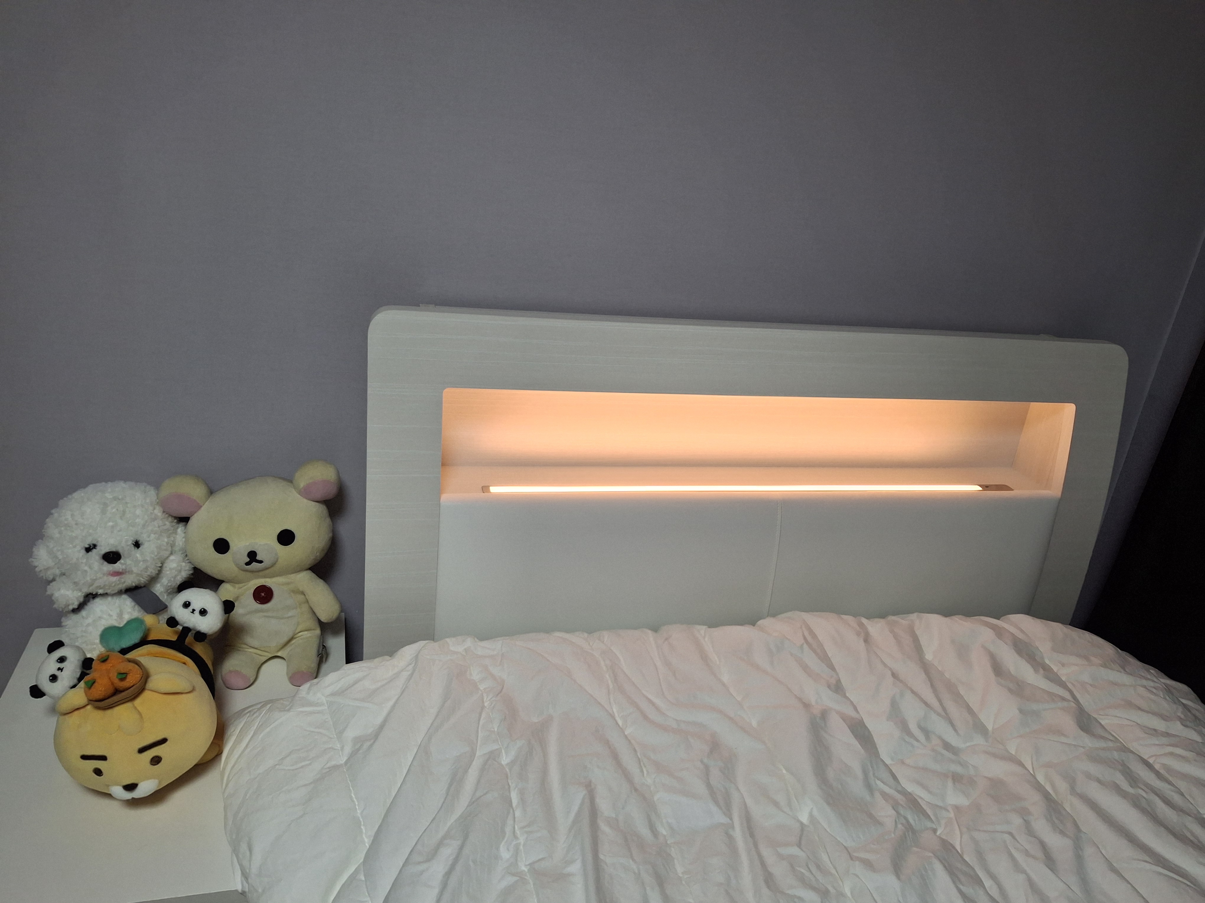 20대 딸 침대로 구입했어요 초딩때 구입했던 침대를 바꾸어주었는데 기존에 사용하던 협탁과도 잘어울리고 헤드부분이 완전 화이트가 아니라 나무결무늬가 살짝들어가 있어 더 고급스럽고 따뜻해보여요 투매트리스 부분도 나무로 된것보다 청소하기도 편하고 침대 위치 바꿀때도 더 수월하게 움직일수 있어서 좋아요 조명도 자기전 휴대폰 살짝보기 편해서 프레임 선택 만족합니다 매트리스는 사장님 권유로 에이스 타임으로 선택했는데 너무 푹신해서 불편하지 않을까 했는데 오히려 옆으로 누울때 더 편해서 딸이 없는 날은 제가 종종 딸방에서 자기도 합니다 제 침대도 에이스 매트리스로 바꾸고싶네요 역시 에이스