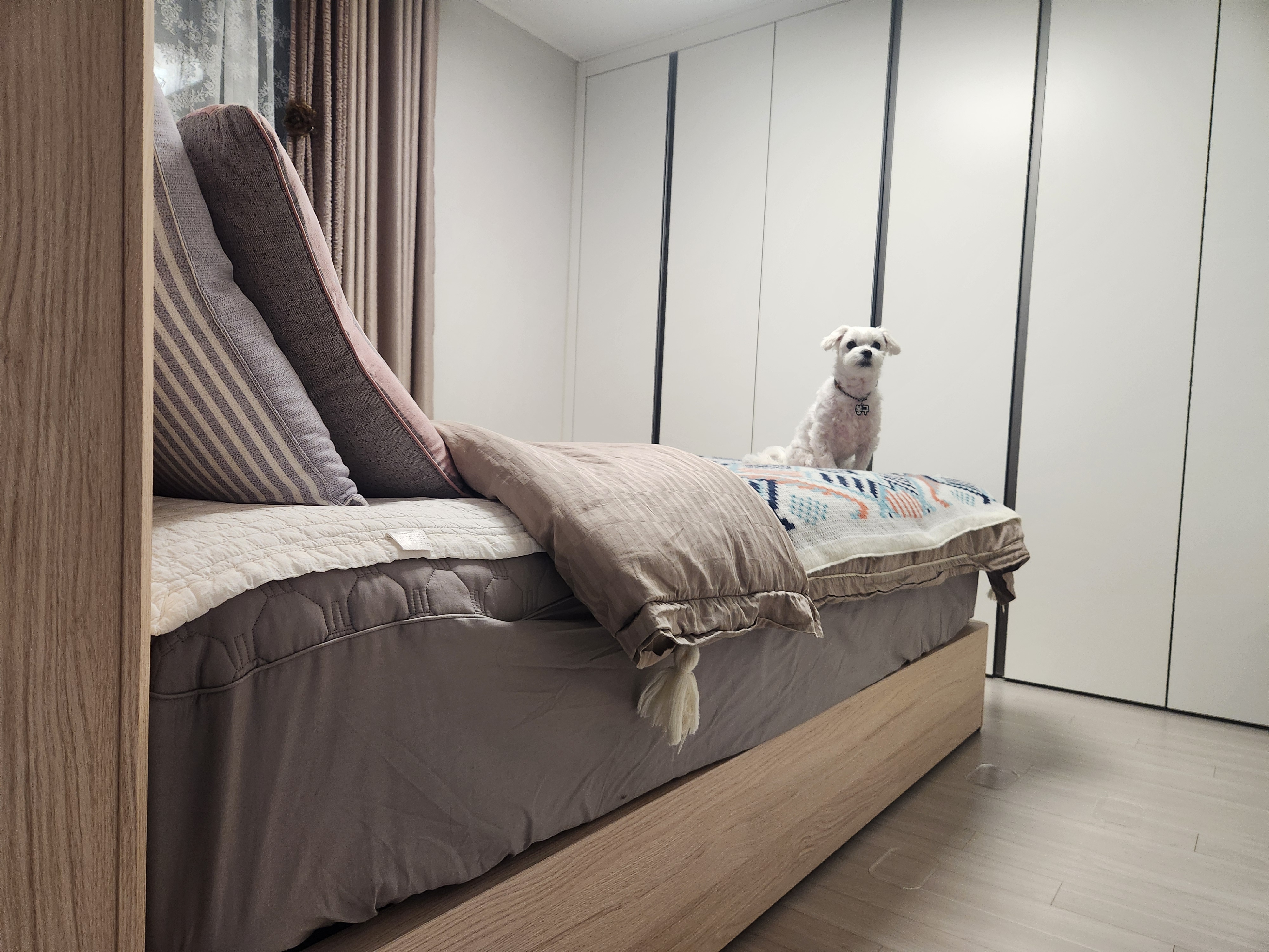 우리집 강아지도 마음에 더는지 요즘들어 부쩍 침대에서 혼자 자는 경우가 많은것 같다.