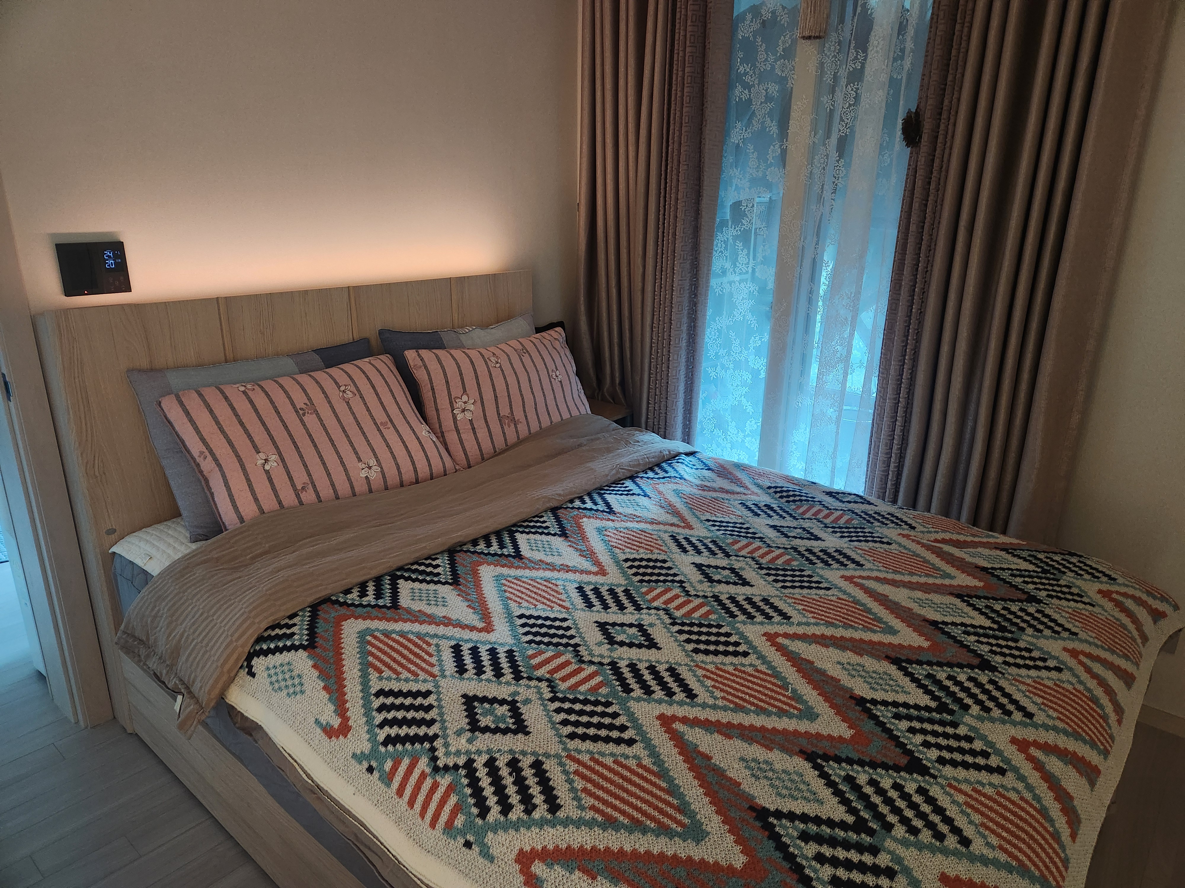 그리고 헤드 부분에 USB포트가 양쪽 끝 부분에 설지되어 있고 3단계 밝기로 조절이 가능한 무드등이 있어 자기전에 휴대폰으로 숏츠를 보는 우리 부부에게는 정말 좋은 기능인것 같다.