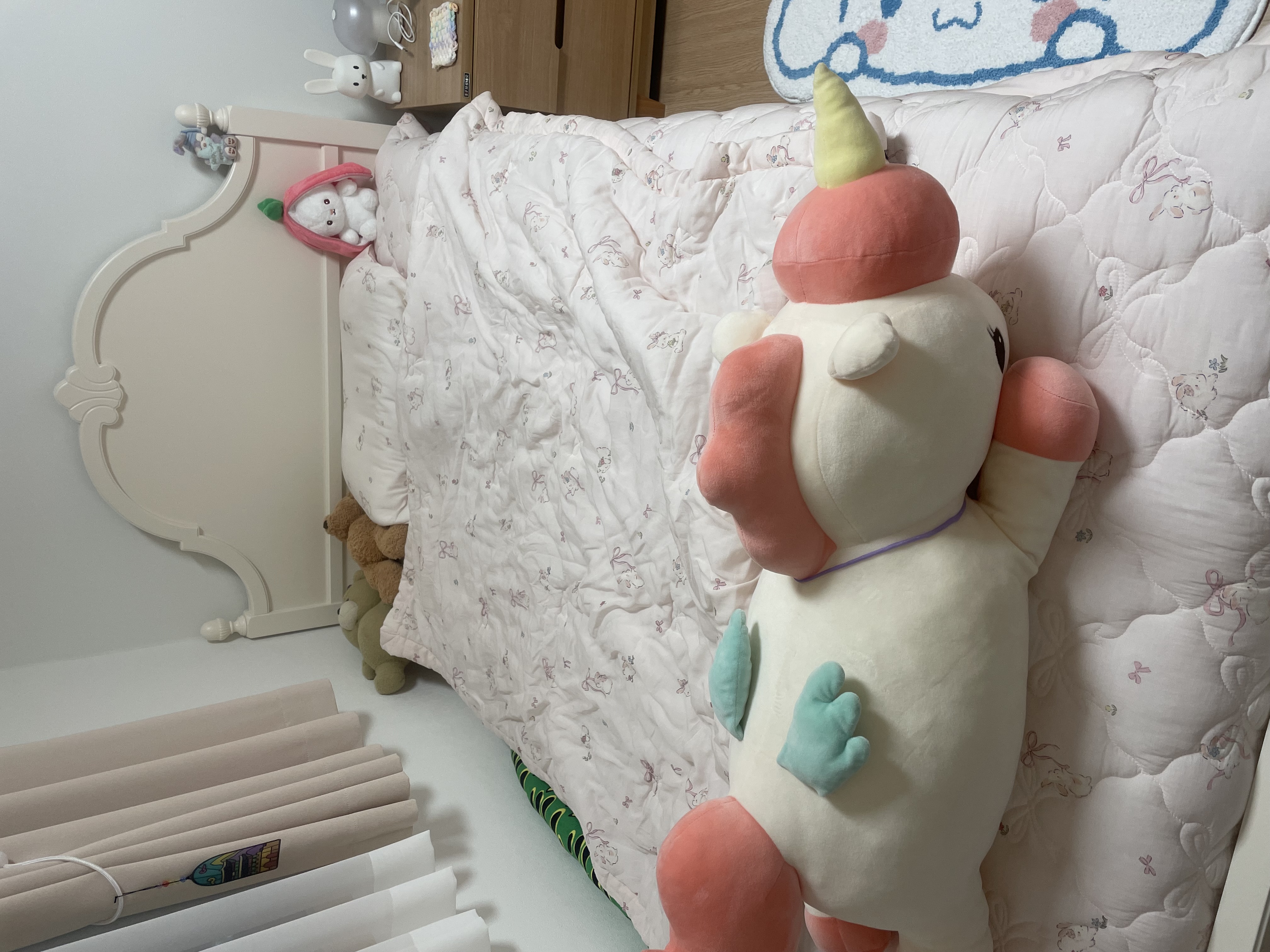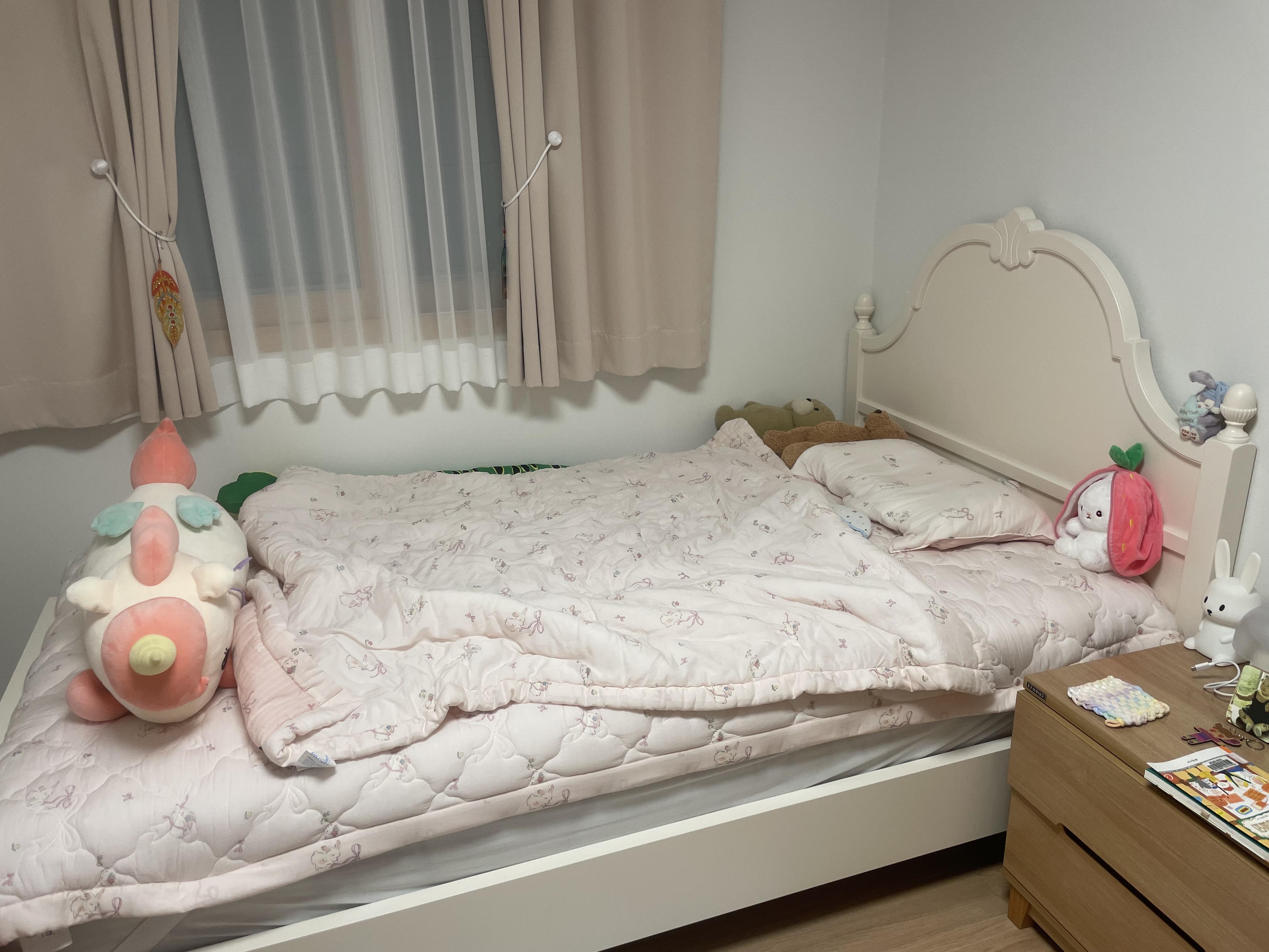 침대 온 첫날 부터 혼자 자고 나오네요. 중간에 깨지도 않고 너무 잘 잤답니다.