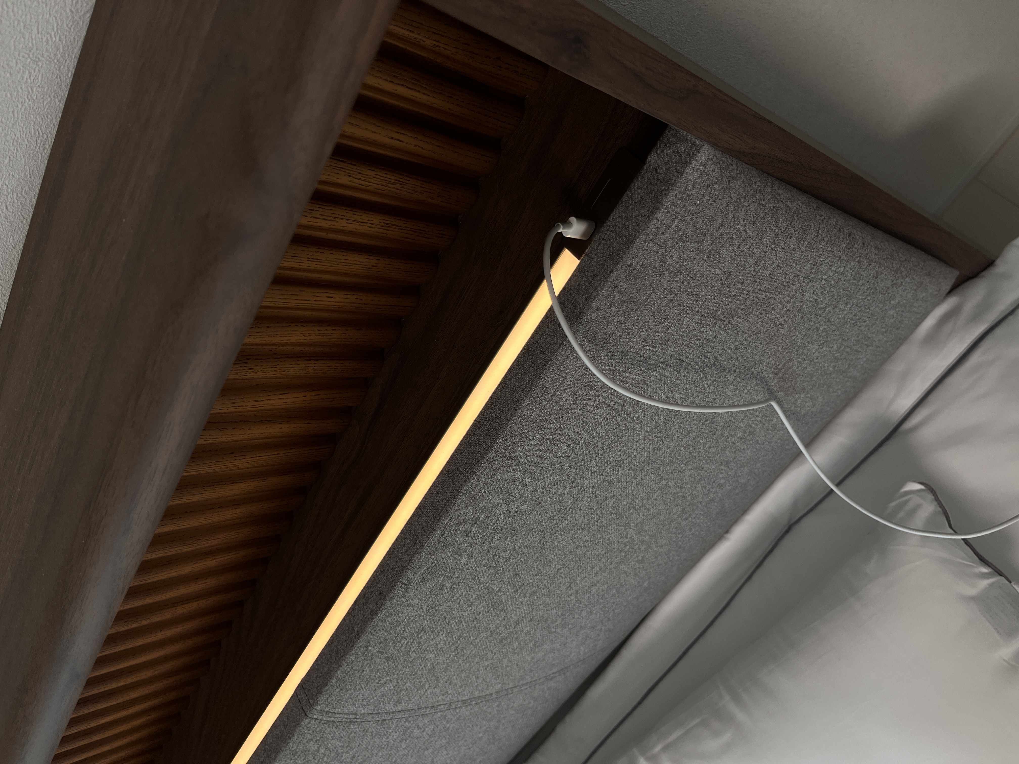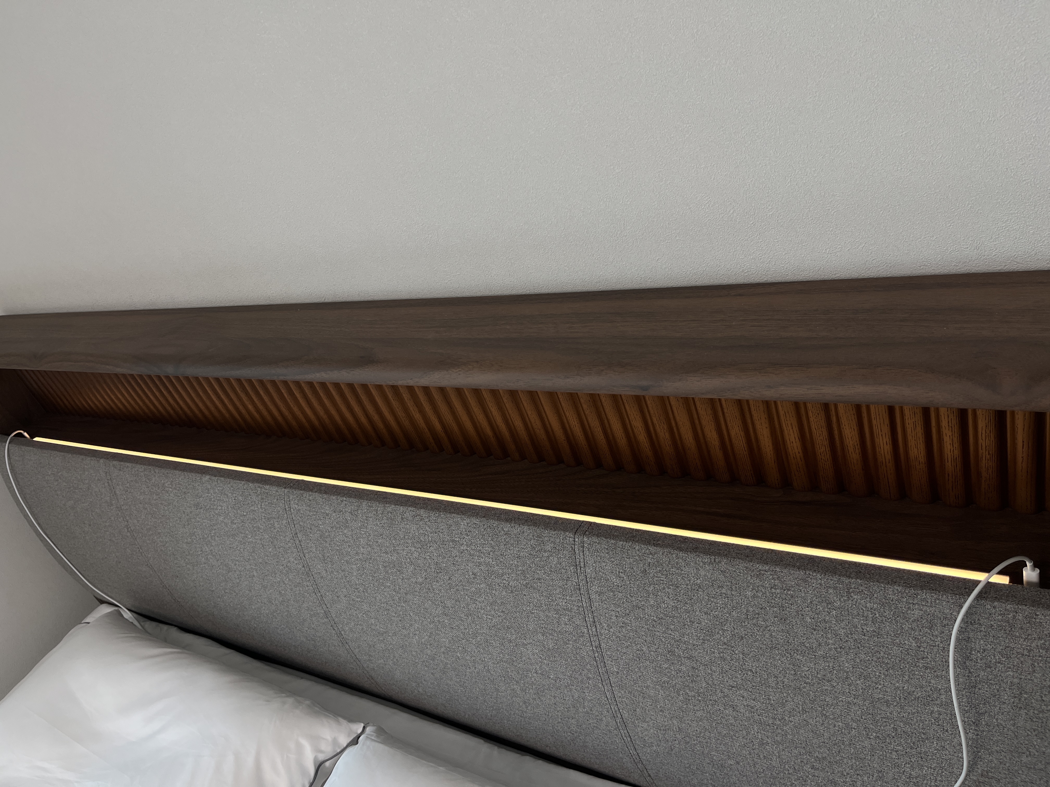 조명도 있어서 밤에 은은하게 켜두어도 이쁘고, 충전기도 양쪽으로 있어 남편이랑 각각 사용하기도 너무 편리해요~