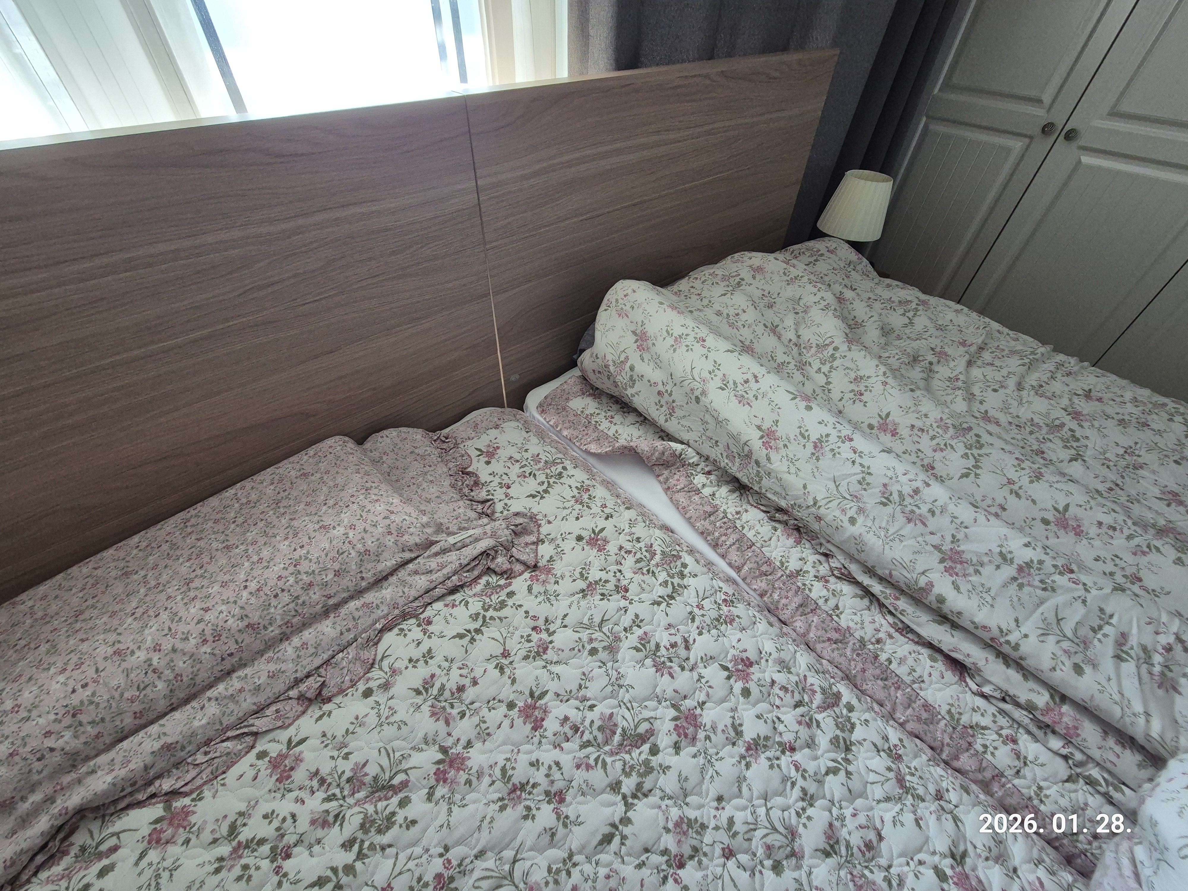 로봇청소기가 침대 아래를 청소할 수 있도록 뚫린 형태를 구매했고, 침대 프레임 다리도 아래쪽에 들어가 있어서 발을 찧거나 부딪힐 일이 없어서 좋네요. 사실 프레임은 다른 브랜드에서 저렴이를 살까 했는데... 매트리스의 내구성과 편안함을 고려해 큰맘 먹고 더블매트리스(에이스 프레임)로 구매했습니다. 아직까지는 불만사항이 딱히 없는데 이렇게 오래오래 썼으면 좋겠네요