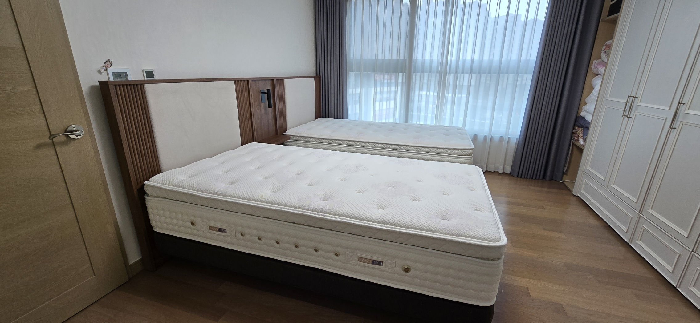 -매트리스: 허리 통증 때문에 너무 푹 꺼지는 제품은 피하고, 적당히 탄탄한 스프링 매트리스를 선택했습니다.