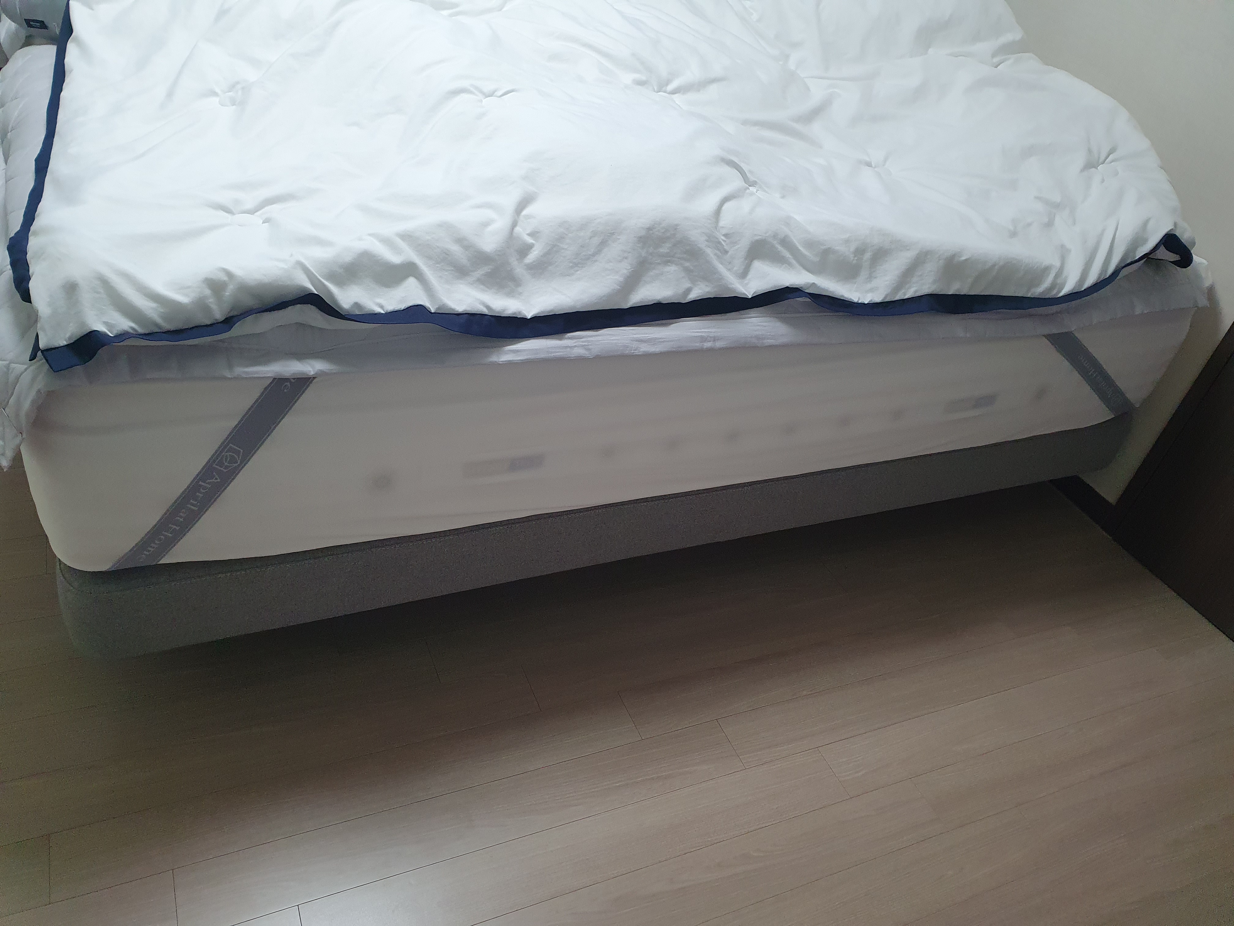 다도하단 프레임은 낮고 견고한 디자인으로 매트리스를 안정적으로 지지해 주며, 사이즈가 정확히 맞아 가장자리 틀어짐 없이 깔끔하게 사용 중입니다. 아이보리 톤 매트리스와 프레임의 우드 느낌도 방 분위기와 잘 어울립니다.