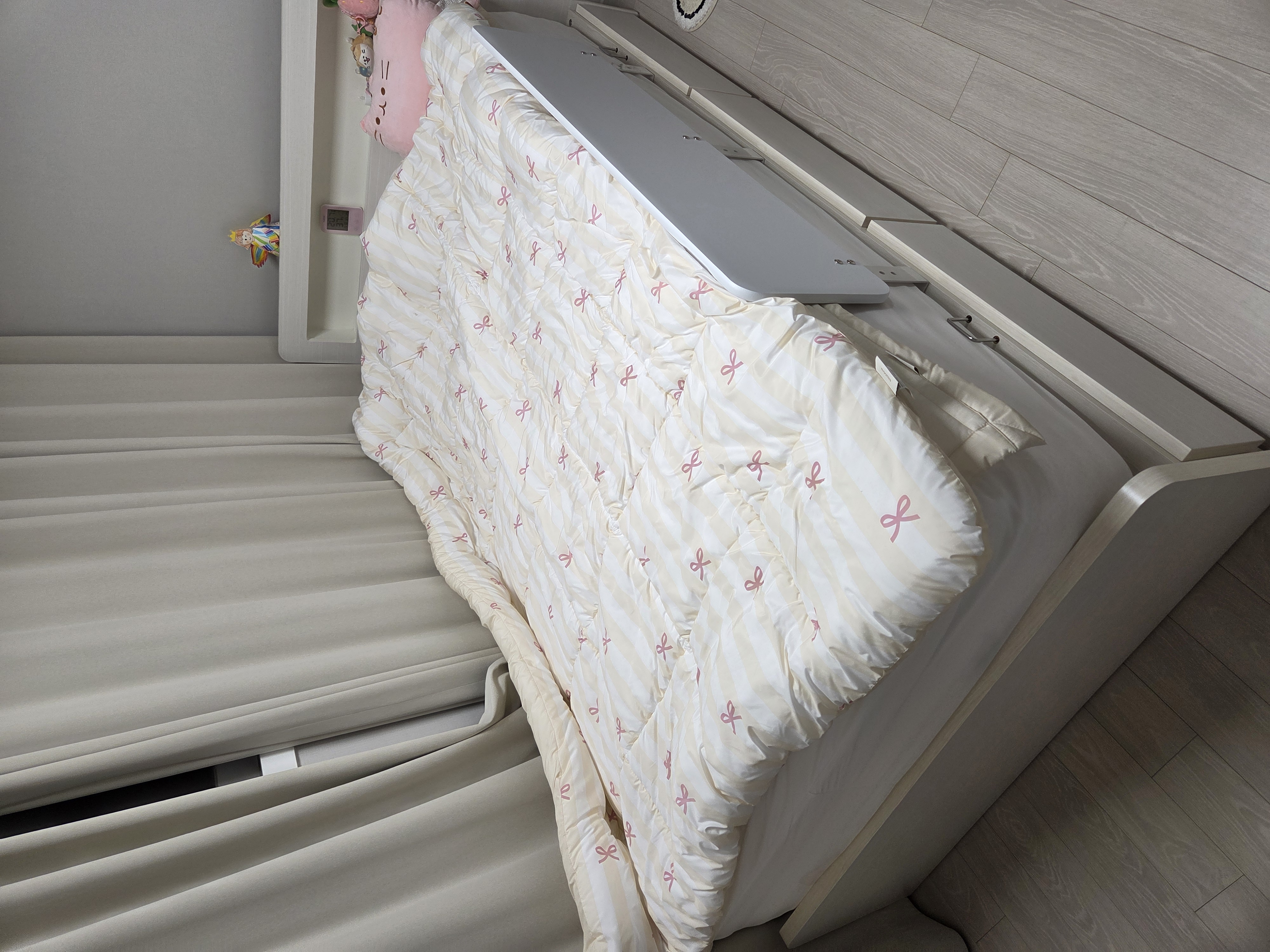 이사를 앞두고 가전을 보러 롯데백화점 인천점에 갔다가 에이스침대에 들어갔는데, 제일 먼저 이 침대에 누워보라고 하시더라고요. 아이가 이 침대에 눕자마자 너무 좋다고 했어요. 다른 침대도 한번 누워보도록 했는데 역시 아이들이 좋은걸 알아보더라고요. 아까 처음에 누운게 제일 편한것 같다고 하네요. 이제 초등학교 들어가는 아이의 분리수면에 성공하기위해 아이 맘에 쏙드는 침대로 결정했어요. 어두우면 무서울테니 수면등이 필요할 것 같았는데 마침 조명이 있는 프레임이 있길래 같이 선택하게 되었어요. 침구까지 아이 마음에 드는 걸로 같이 골라 깔아주니 단번에 분리수면 성공했네요. 너무 마음에 들어요.