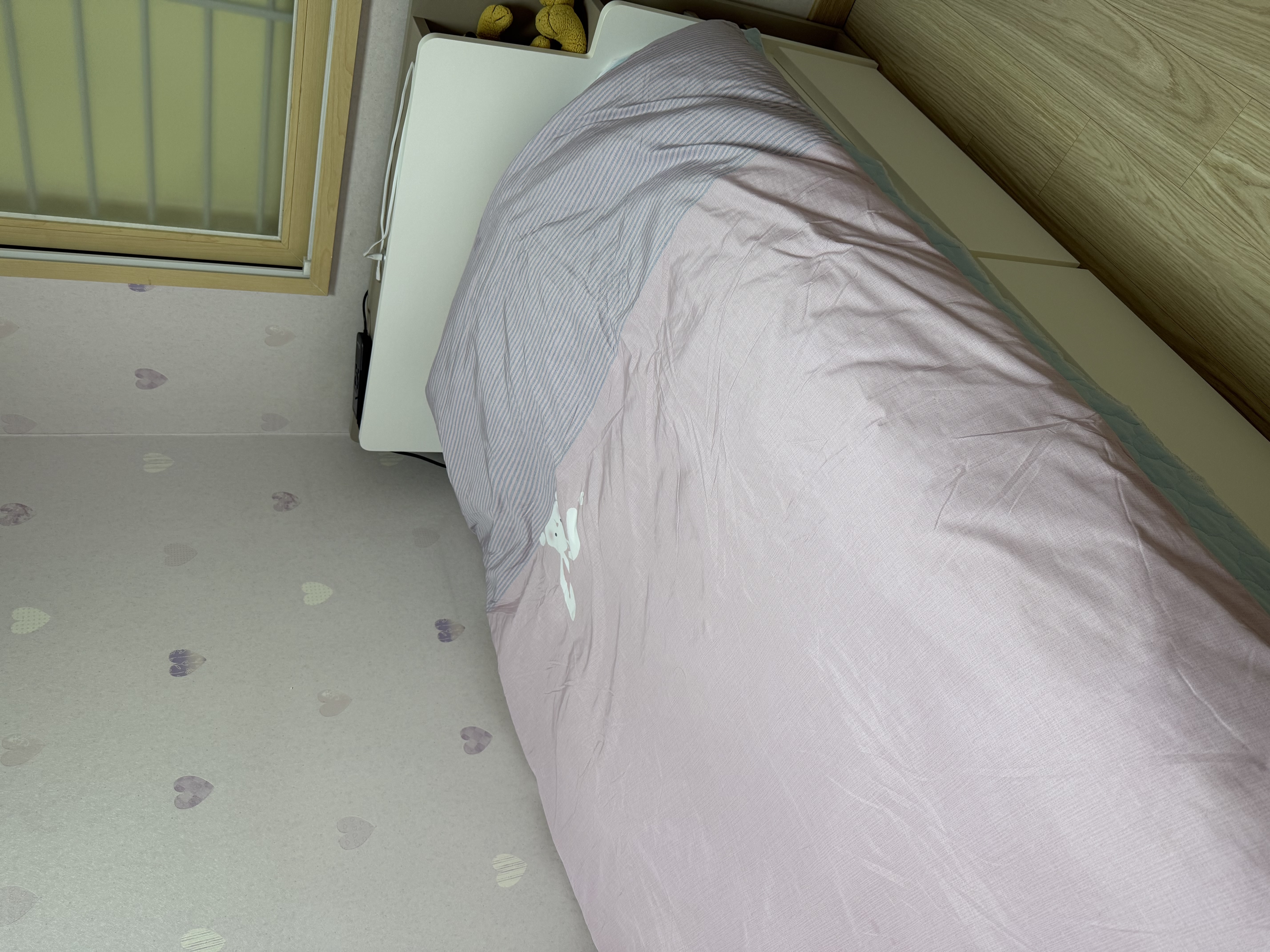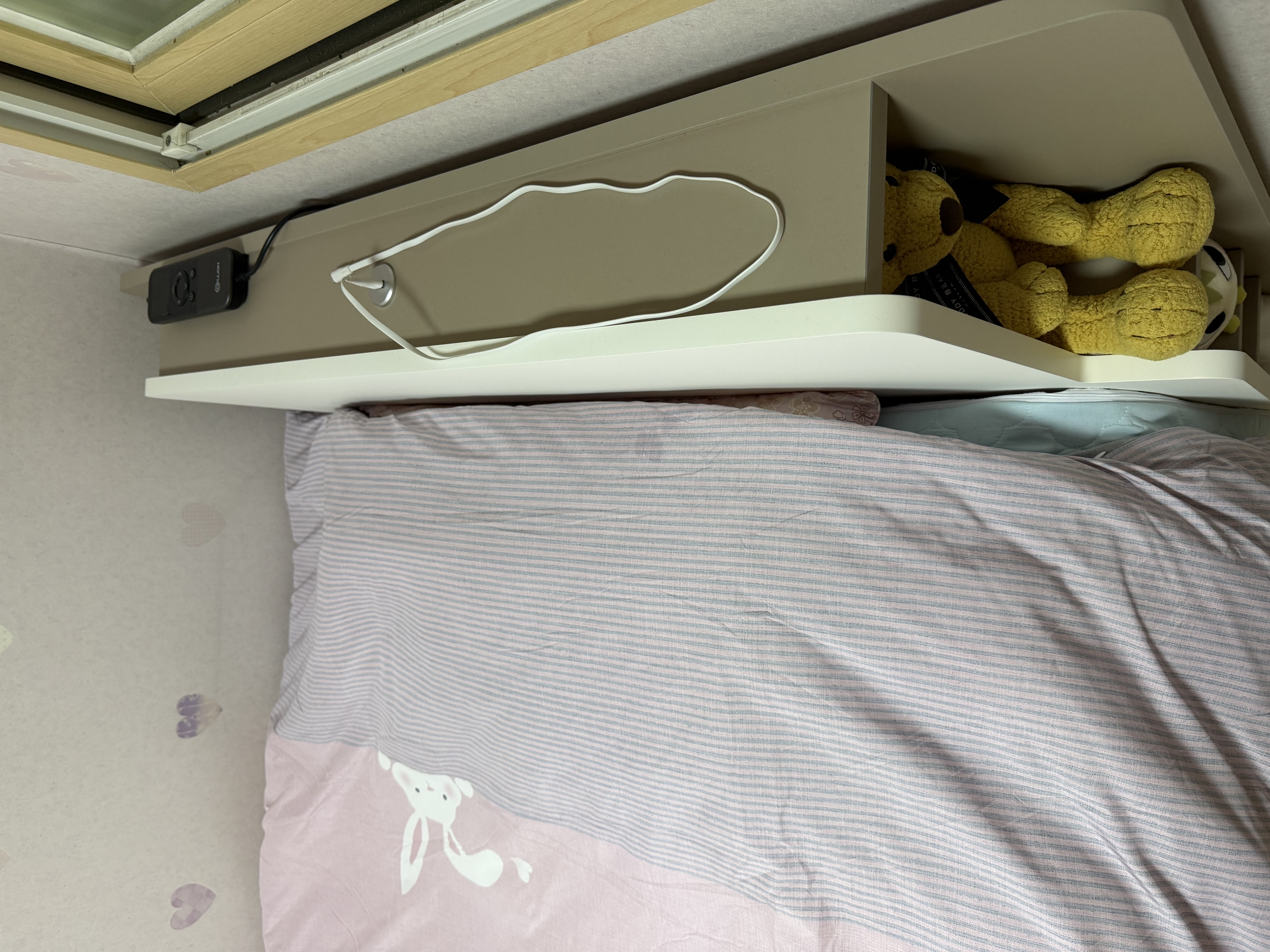 3. 옆에 있는 수납장에는 좋아하는 인형을 손수 골라서 넣었습니다. 방이 작아서 침대를 벽으로 붙일 수 밖에 없어서 반대편 수납장을 사용하지 못해서 아쉬울 따름입니다.
