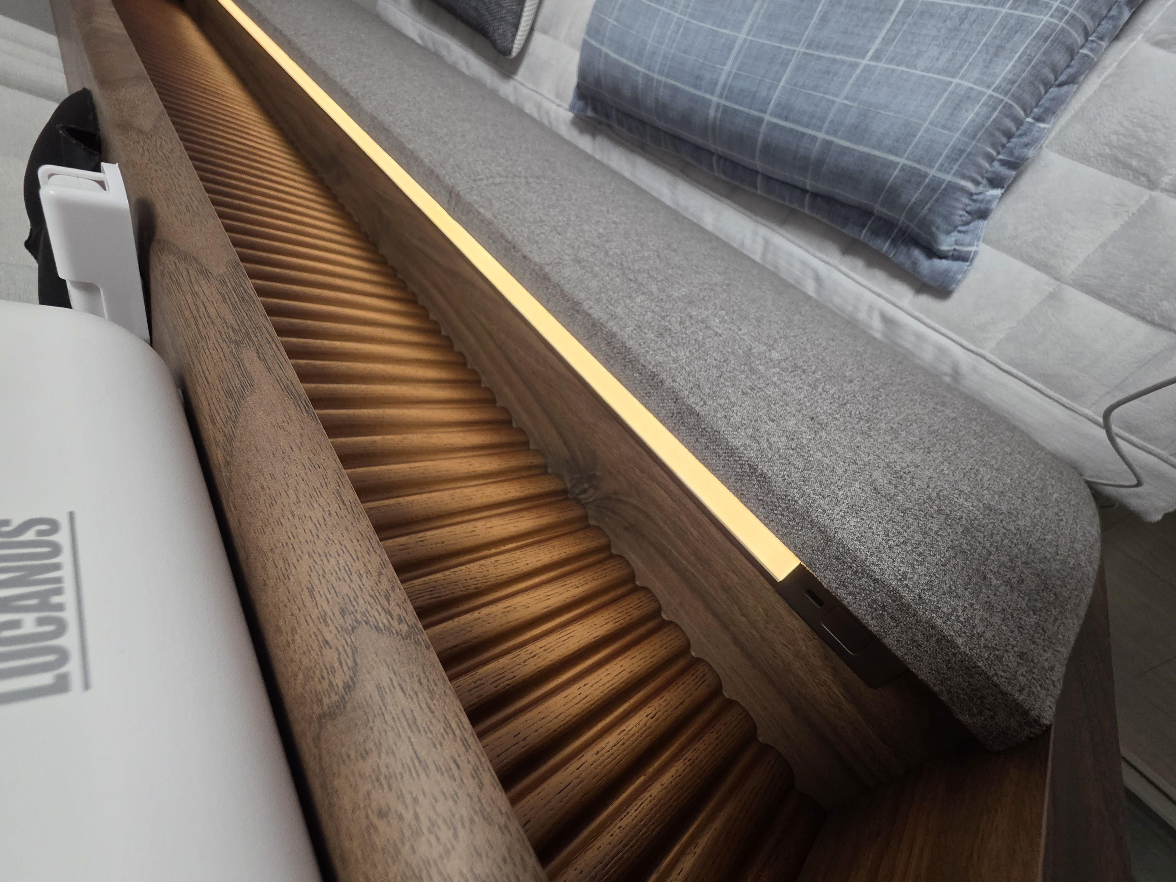 킹사이즈 침대 구입을 위해 청량리 롯데백화점 에이스침대 방문했는데 루체3 프레임이 딱 눈에 꽂이더라구요. 고급스러운 페브릭 등받이와 터치조명이 너무 맘에 들었어요.