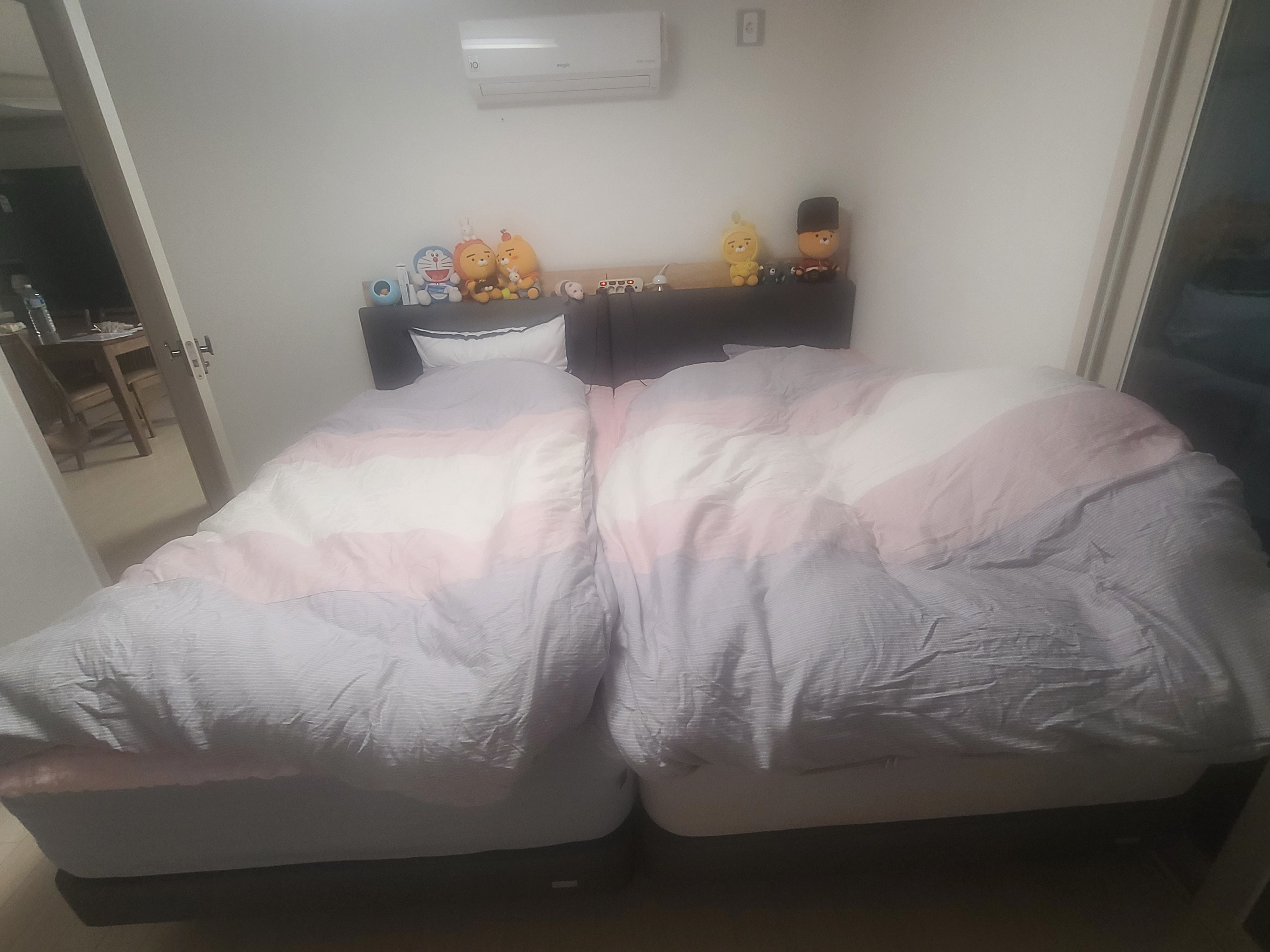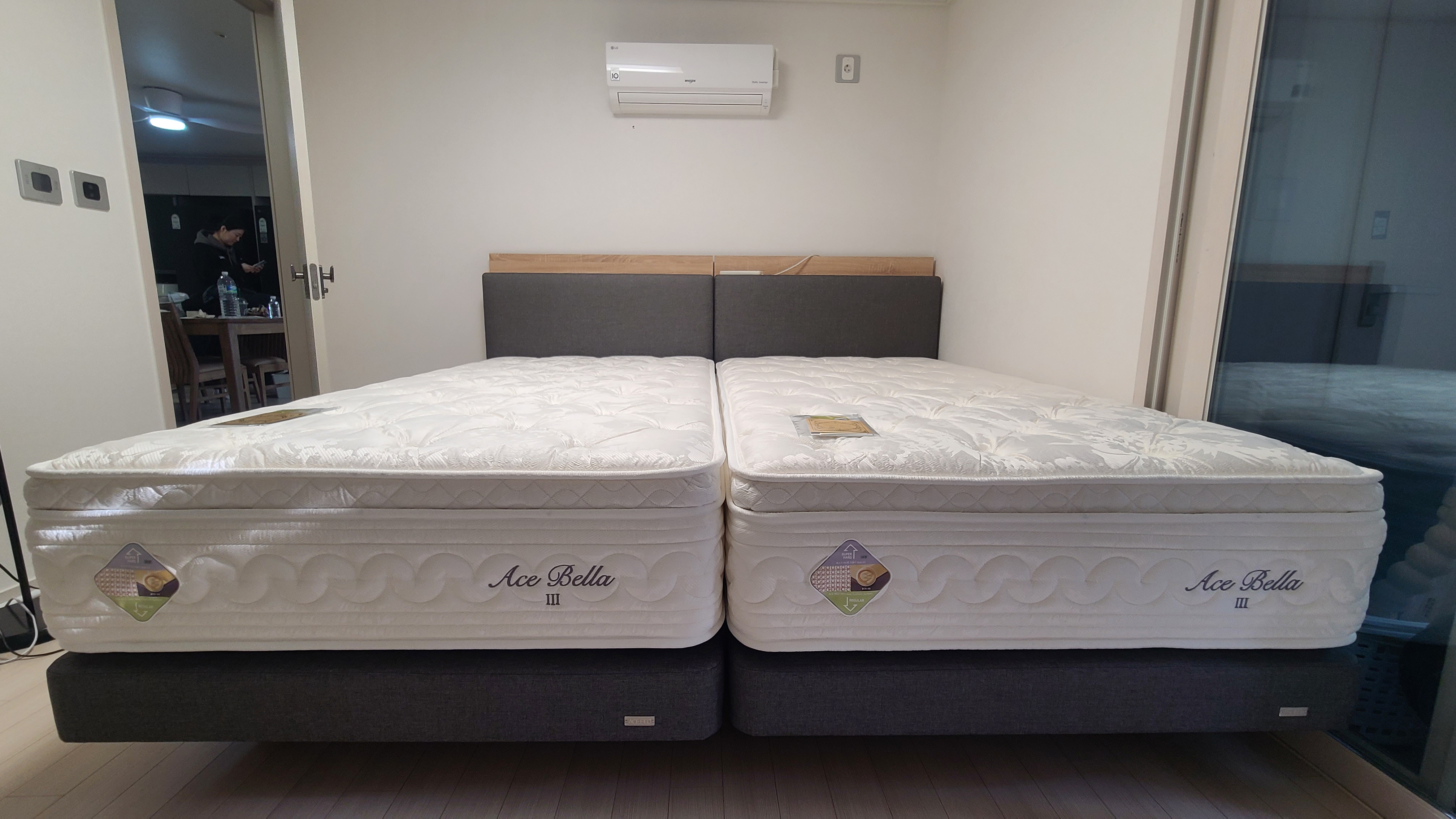 남편하고 저하고 잠버릇이 좋지않아 슈퍼싱글 두개 붙여서 쓰는데 두 침대 붙여도 중간에 이격이 없어 좋은것 같아요. 요즘은 패밀리세트? 뭐 이런식으로 침대를 붙여써도 이격이 없는 제품들이 꽤 있나보더라구요. 애기있는 집들은 애기침대랑 붙여써도 좋을것 같아요.