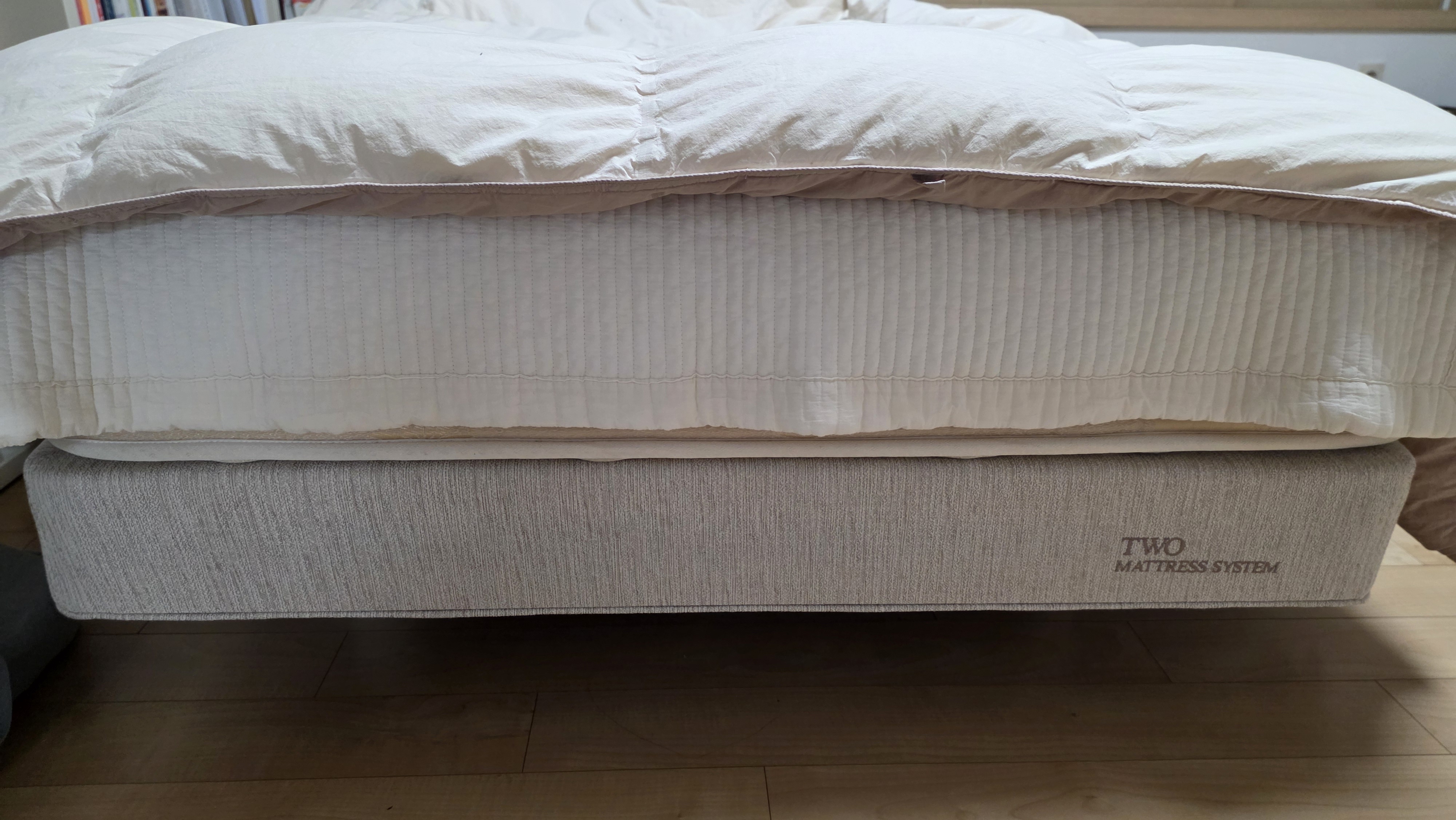 운동하는 아들이 자고 일어나면 허리가 자주 아프다고해서 가격대가 있었지만 고민하다 벨라3 제품으로 구매했습니다. 제품을 구매한지 시간이 흘러 기억이 정확하지 않지만 벨라3는 허리 아픔 분들을 위해 특별히 고안된 제품이라고 설명해주셨던 것 같습니다. 양면의 쿠션감이 조금 다르며 전반적으로 쿠션감은 하드한 편입니다. 신기하게도 이 제품 사용 후 부터는 허리 아프다고 하지 않습니다. 이젠 더이상 매트리스 때문에 허리 아프단 얘기 안들어서 너무 좋습니다. 마침 매트리스와 프레임을 같이 구매하면 프레임을 할인된 가격으로 구매가 가능해 프레임도 같이 구매했습니다 . 프레임 아래 공간이 있는 형태라 프레임을 받치는 다리 가 보여서 외관상 별루 일 것 같았는데 생각했던 것 보다 프레임 다리가 많이 보이지 않습니다.