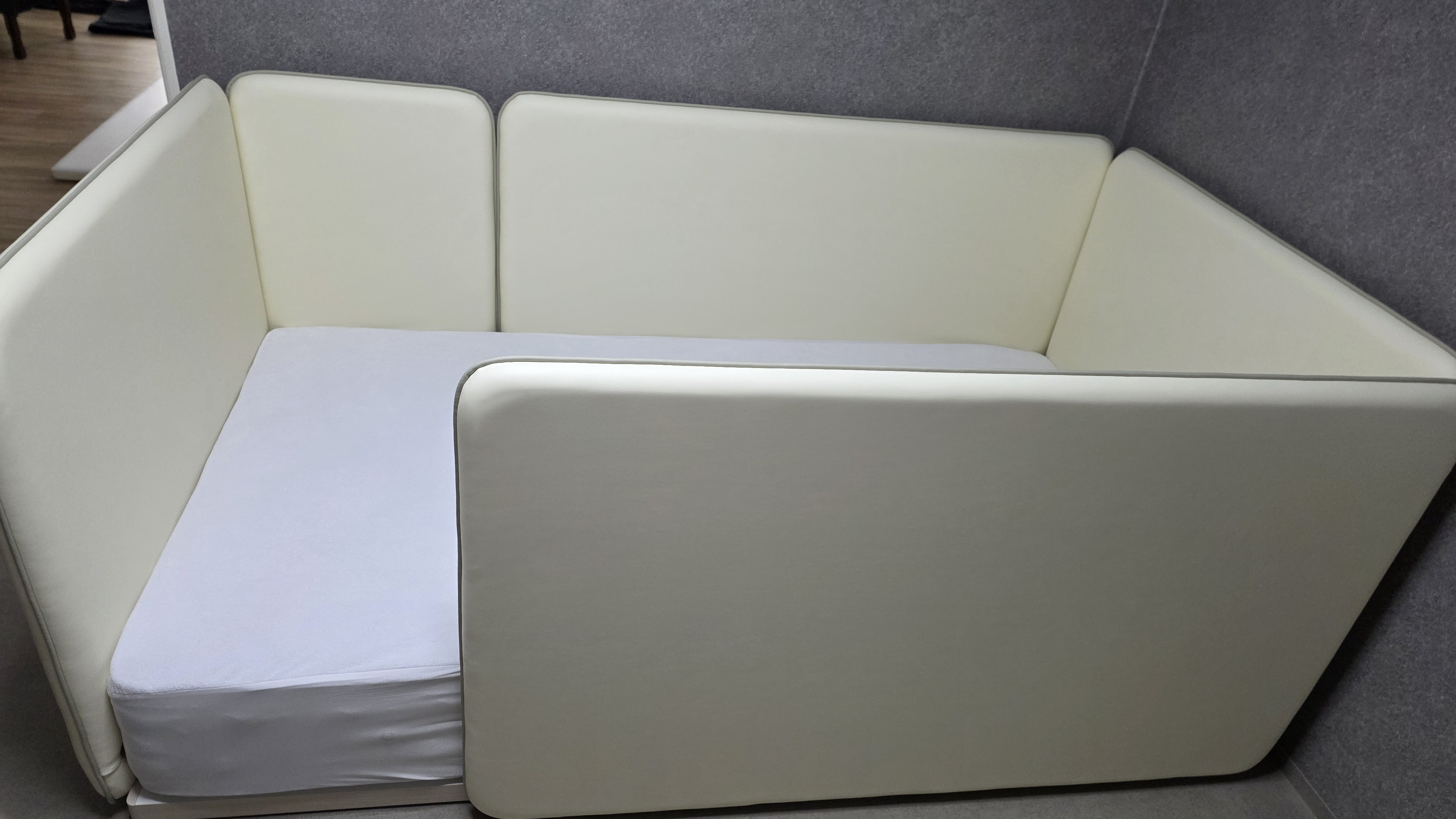 아기가 커가면서 신생아침대에서 저상형 침대로 바꿔주려고 알아보던 중에 에이스침대에 아기침대가 있다는 걸 알게되었습니다. 에이스스퀘어 전주점에 방문했는데 깔끔한 첫인상이 마음에 들었습니다. 직원분이 라쿠엘 90센티 범퍼가 새로 나왔다며 추천해주셨고 실제 제품이 전시되어 있는 것은 아니었지만 에이스침대 브랜드에 대한 신뢰로 구매결정을 하게되었습니다.