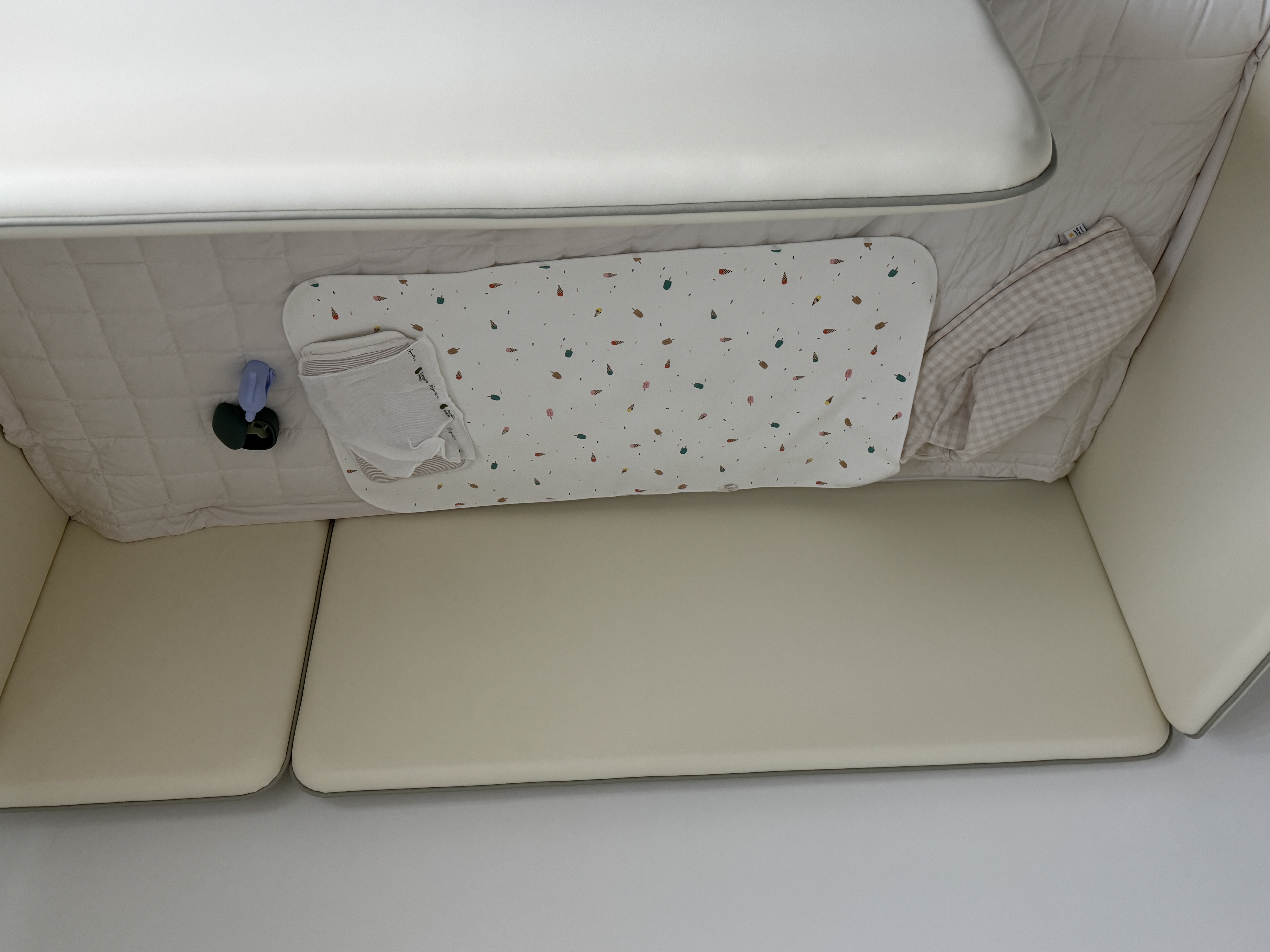 특히 침대 가드 높이가 높아서 아기가 나중에 잡고 일어서는 시기가 와도 안전할거 같고 가드도 두툼해서 부딪혀서 다칠 걱정 안해도 될거 같아요 ㅎㅎ
