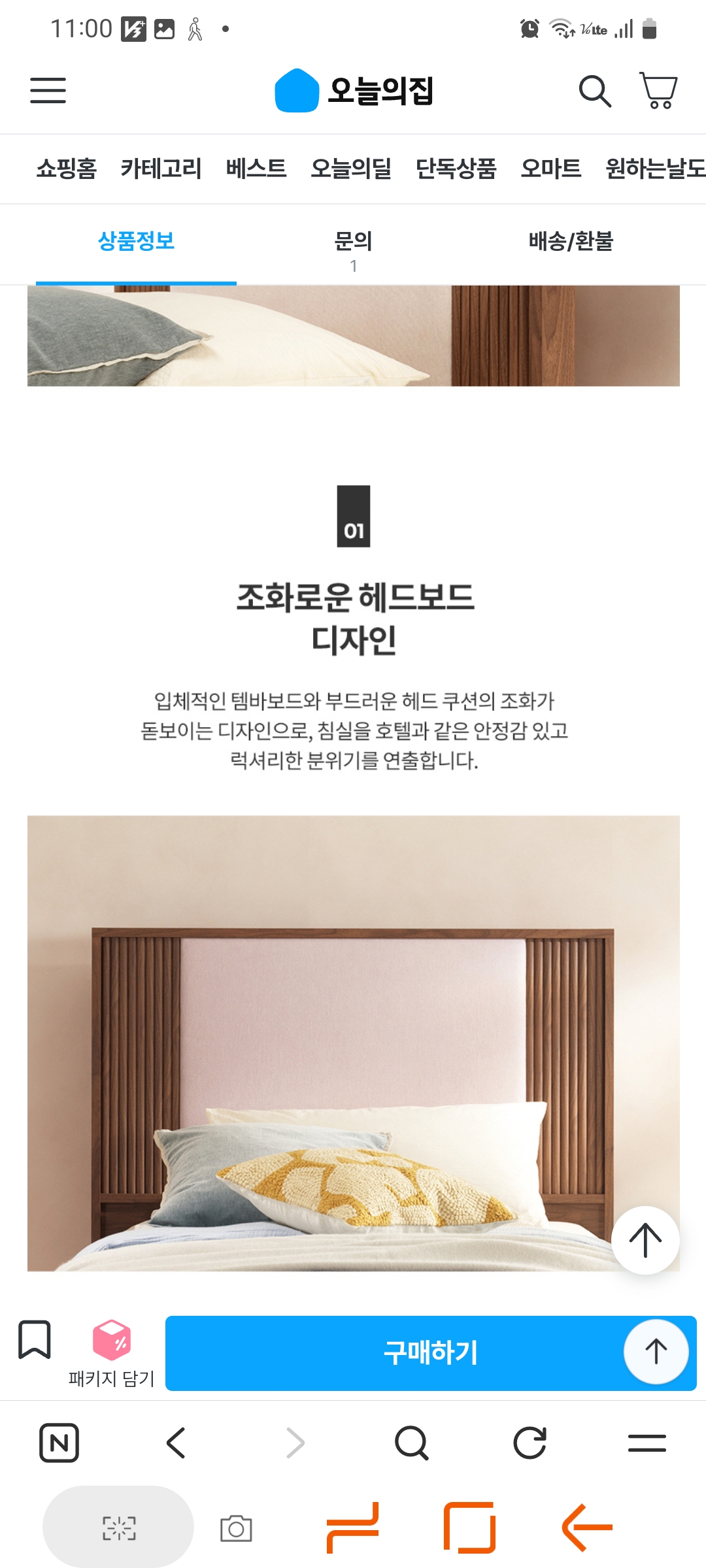 노벨라 프레임은 입체적인 템바보드와 포근한 패브릭 쿠션의 만남! 중앙의 쿠션이 등을 편안하게 받쳐주고, 좌우 템바보드 패턴이 시각적으로 안정적인 비례감을 줍다.