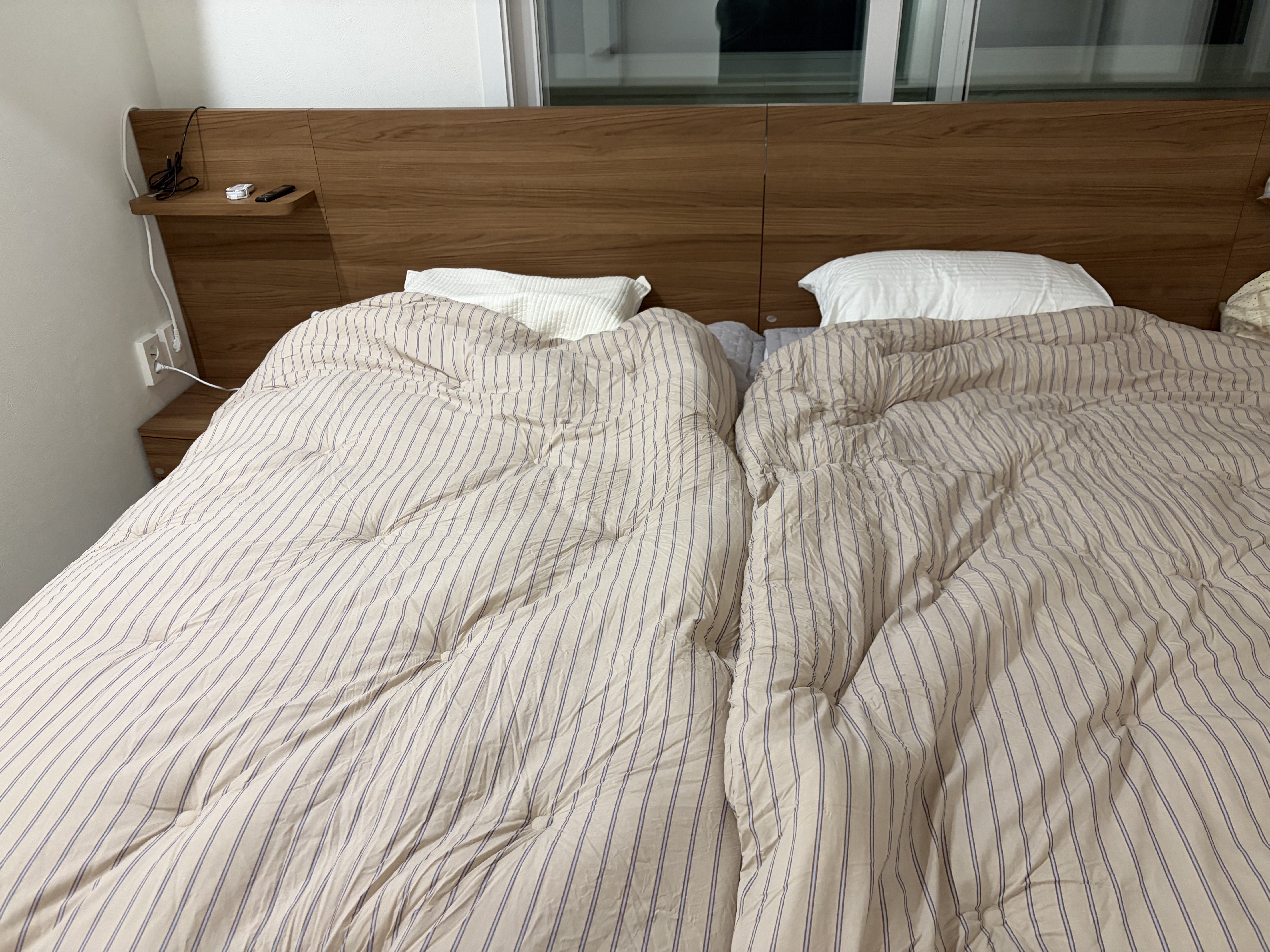 저는 슈퍼싱글 사이즈 두 개를 나란히 배치해서 사용 중인데, 서로의 움직임이 크게 전달되지 않아 각자 편안하게 숙면할 수 있는 환경이 만들어졌습니다. 같이 사용하면서도 독립적으로 쉴 수 있다는 점이 가장 큰 장점으로 느껴집니다.