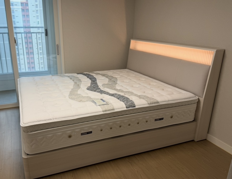 신혼침대로 고민많았고 타브랜드와 비교도 해보며 다녔지만 저희부부한테는 에이스침대 매트리가 제일 잘 맞더라구요 ^^ 매장에서 누워보고 너무 포근하고 잠이 잘 올거같은 프리미엄 소프트라인 하이브리드테크7 매트리스를 구매했어요~! 프레임까지 같이 구매했는데 루체3 화이트오크에 LED조명 켜면 침실분위기 고급지게 만들어주네요~! 신혼집에서 누워보고 진짜 너무 포근하고 잠에 예민한편인데 너무 잘 자고 있어요. 옆으로 자는 습관있는 저희부부는 옆으로 누웠을때 어깨 불편함도 전혀없이 너무 만족해가며 자고있어요~! 역시 침대는 에이스침대네요 ㅎㅎㅎ 라지킹사이즈라 둘이 누워도 여유있게 잘 수 있어서 너무 좋아요~ !! 신혼침대로 에이스침대 선택하길 너무 잘한거 같아요~^^