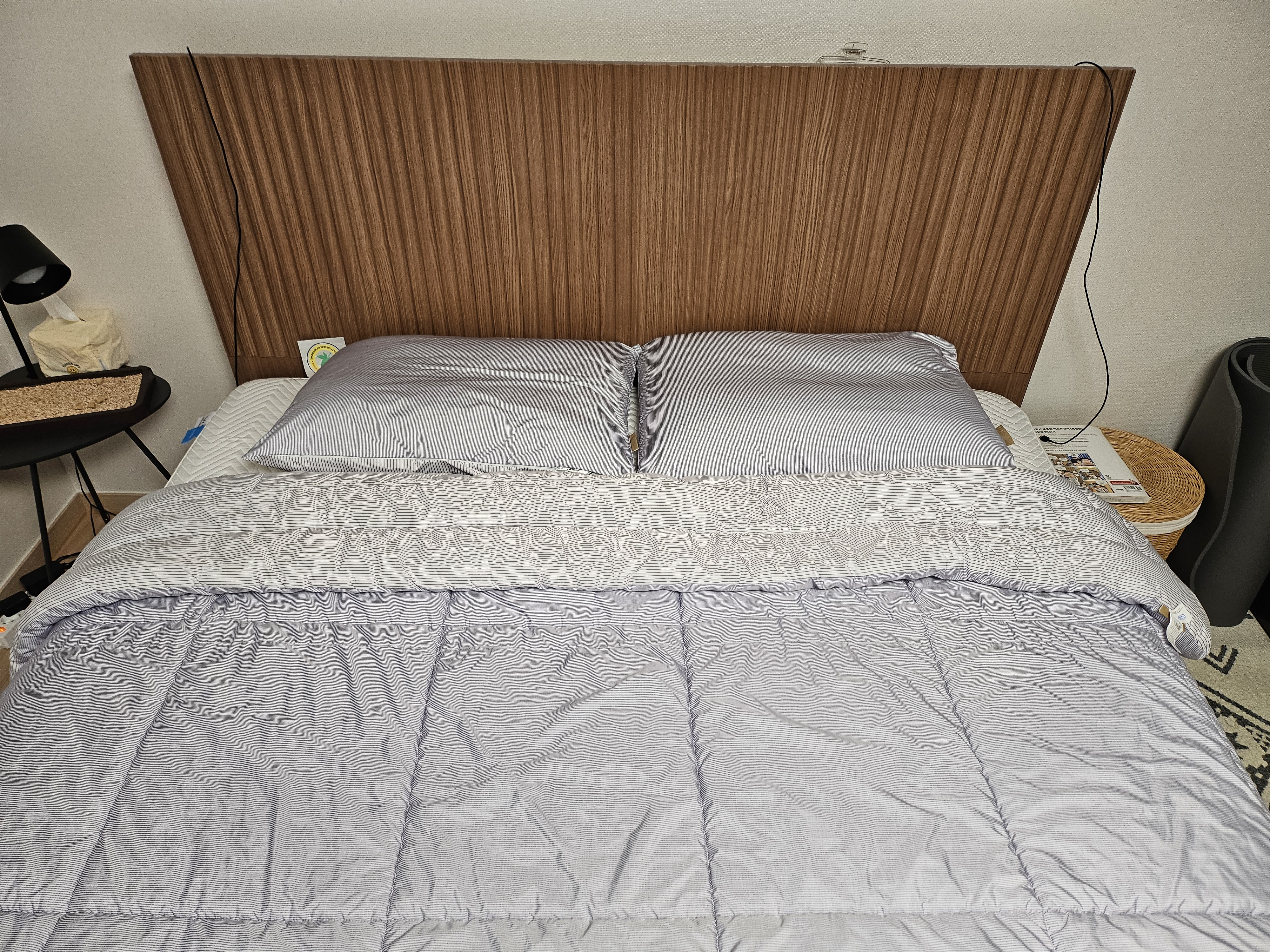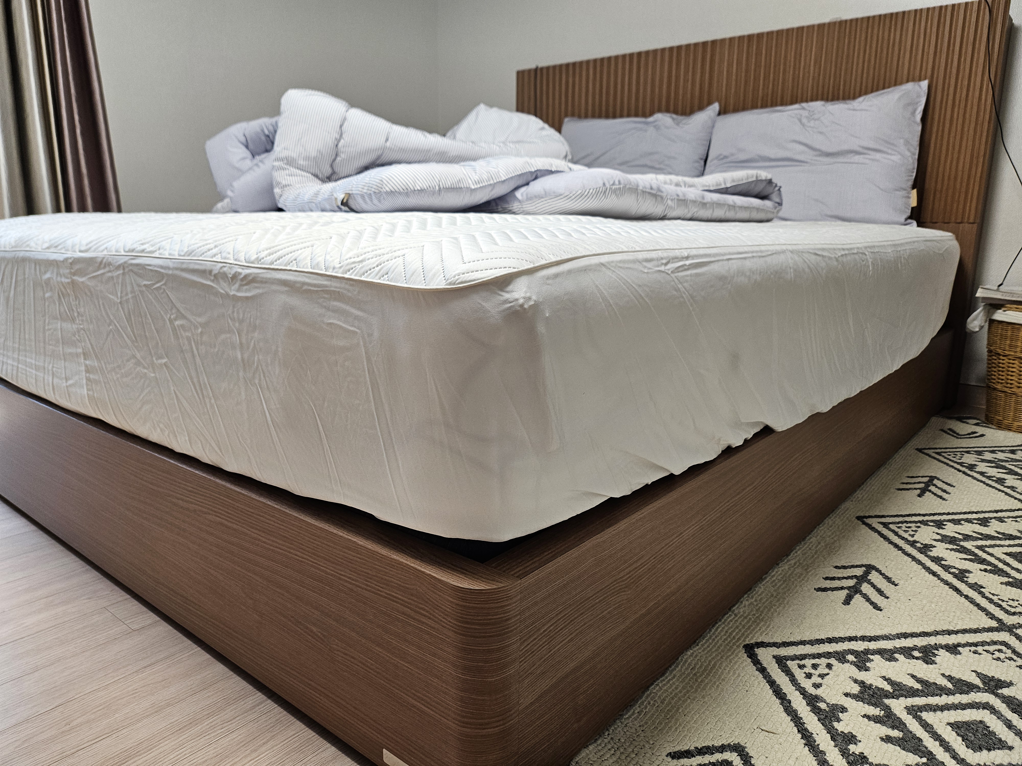매트리스 위쪽은 미디엄, 아래쪽은 하드로 설정해 놓았습니다. 아무래도 스프링은 오랜 시간동안 쓰다보면 강도가 떨어질테니 시간이 지나고 뒤집어 준다면 하드 매트리스도 써볼 수 있지 않을까요?