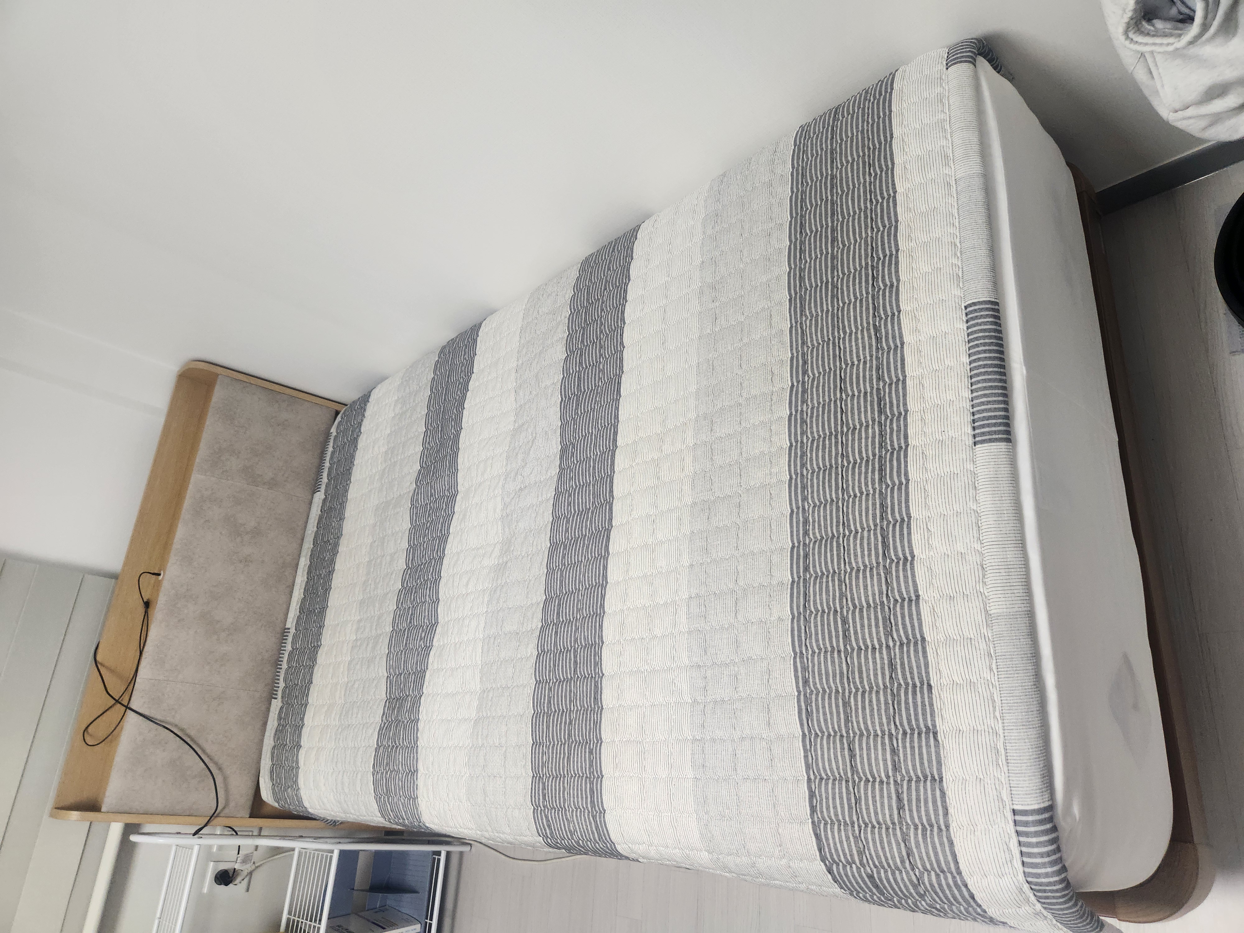 땅바닥에서만 자다가 이번에 잠자리를 침대로 바꿨는데, 결론부터 말하면 대만족입니다. 기존에는 그냥 가성비 좋은 메트리스를 쓰고 잤는데, 이번에 감사하게도 침대를 그것도 에이스침대를 구매하게 됬네요. 침대는 허리에 안좋다는 인식이 개인적으로 있었지만, 막상 구매후에 잠을 자보니까 오히려 침대도 침대나름이라는 생각이 들고, 매장에 직접 가서 누워보고 허리를 잘 받쳐준다는 느낌을 받았던 "프레임 BRA-1441E", "메트리스 ACE BELLAIII" 제품을 매장에서 직접 구매하였습니다. 너무 푹신하지도, 너무 딱딱하지도 않은 말그대로 적당한 강도의 메트리스입니다. 배송도 빠르고, 친절하게 제품 설명까지 잘 해주셔서 별도로 신경쓸것도 없었습니다. 이번에 에이스침대를 구매하게되어 매우 기쁘네요.