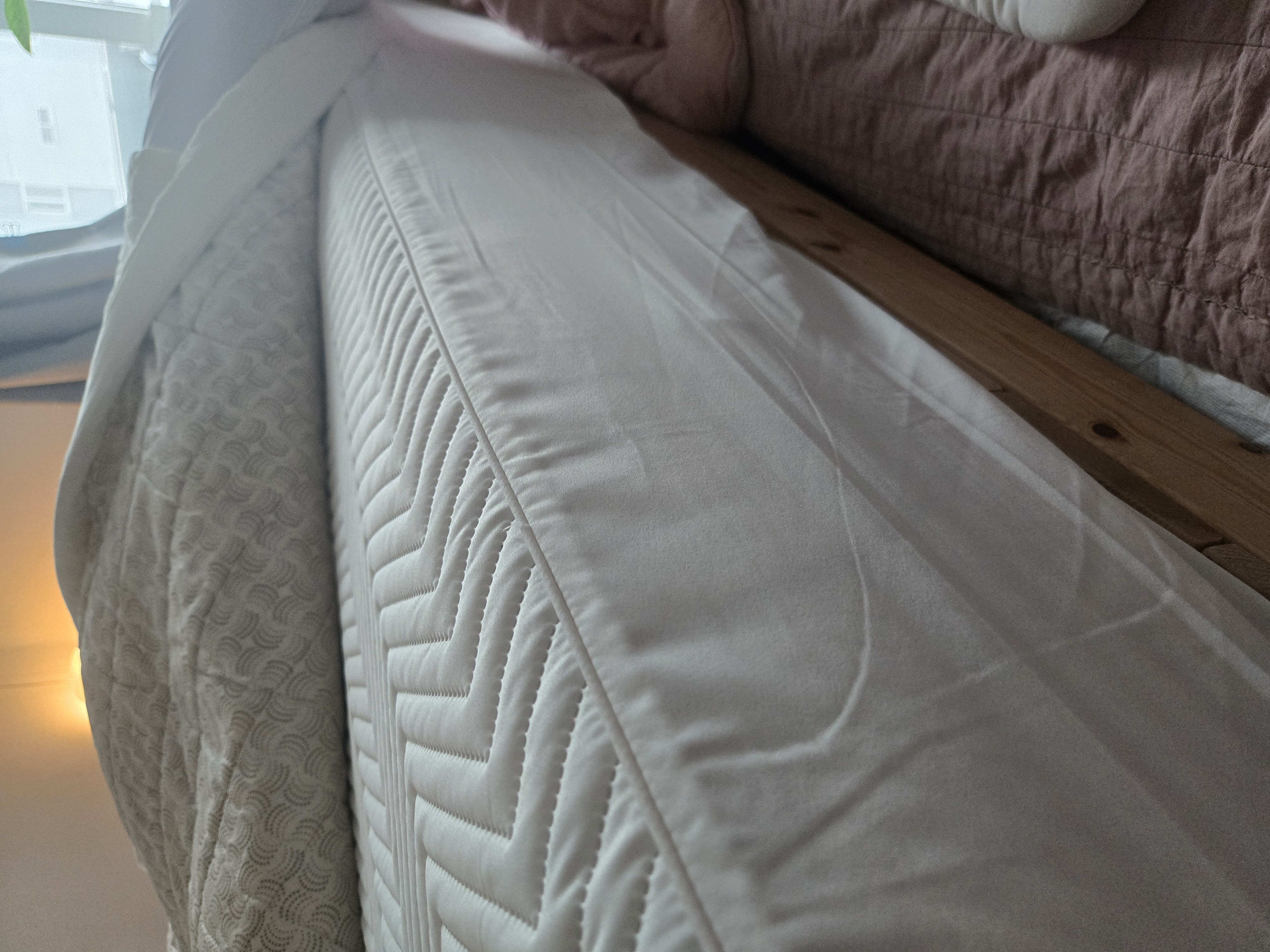 허리디스크가 있어서 한 달 넘게 리서치하면서 고심고심 고른 게 듀오테크3 매트리스에요 허리를 단단히 받쳐주면서도 배기지 않아요 독립스프링은 나중에 변형될 수 있는데 듀오테크는 연결형이라 내구성이 더 좋다고 해요. 저희는 침대 프레임 높이가 높아서 적당한 높이 매트리스가 필요했는데 듀오테크3가 적당하더라고요. 미디어하드로 쓰다가 나중에 슈퍼하드로 바꿔 쓸 수 있어서 실용적인 것 같아요. 구매한 김에 마이크로케어시트도 같이 구매했어요. 매트리스 사이즈에 잘 맞고 깔끔하네요. 집먼지 진드기 침투 못하게 무봉제로 되어 있어서 깔끔해요. 만성 비염인인데 진작 바꿀 걸 그랬어요. 추천해요.