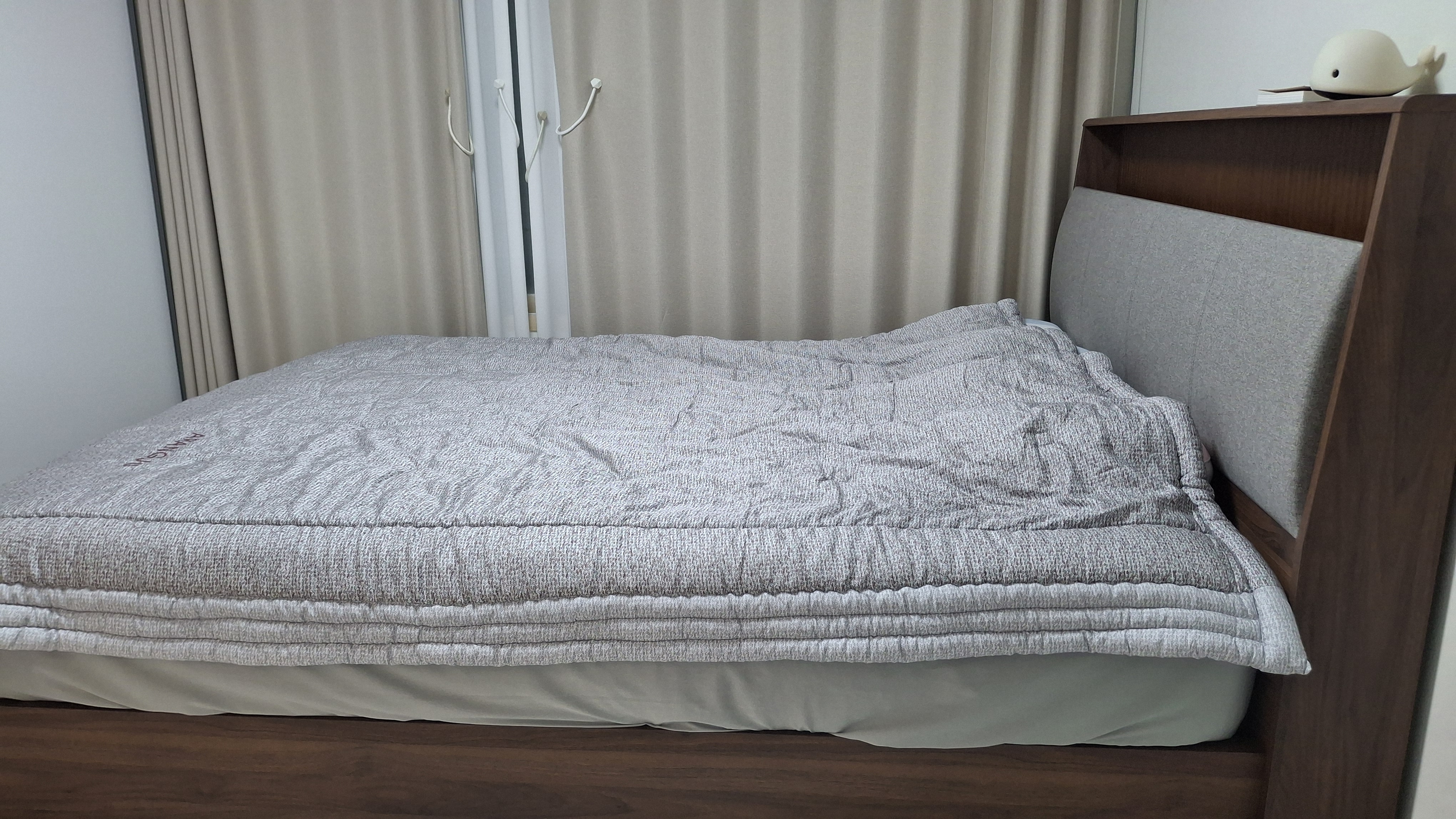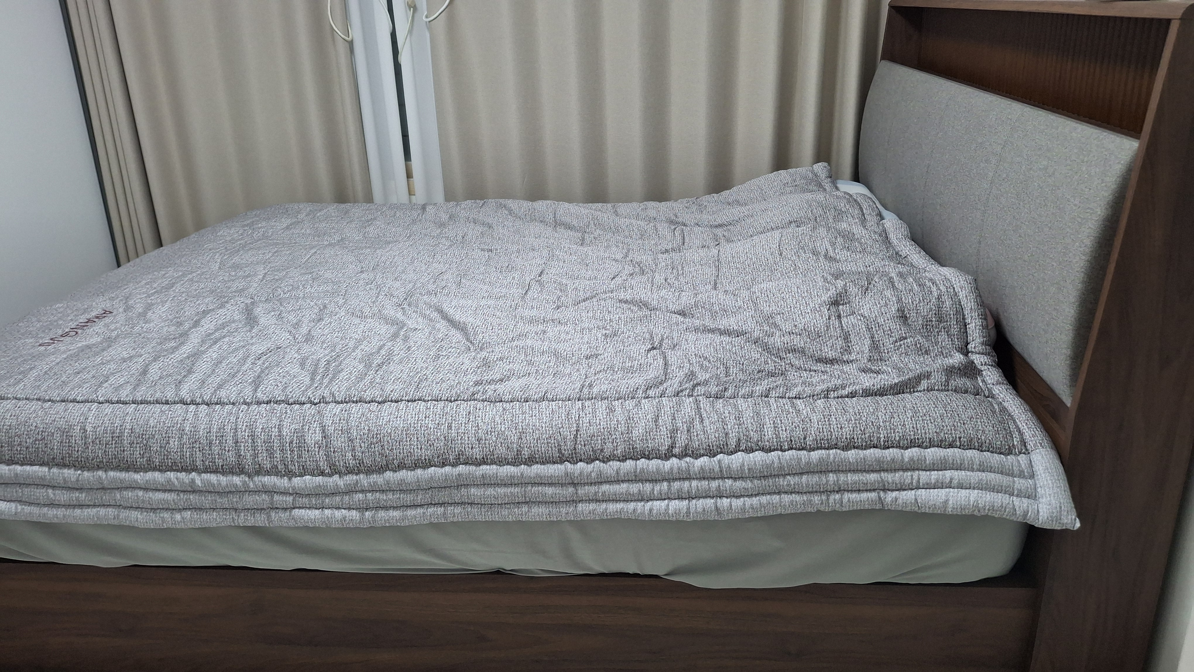함께 사용 중인 마이크로케어 쿨링패드도 만족도가 높습니다. 누웠을 때 열감이 빠르게 내려가서 덜 덥고 쾌적하게 잘 수 있었고, 땀이 많은 편인데도 끈적임 없이 보송한 느낌이 유지되는 점이 좋았습니다. 또한 패드가 두툼해서 쿠션감도 살짝 더해지고, 매트리스를 보호해주는 역할까지 해서 위생적으로 사용할 수 있어 안심이 됩니다.