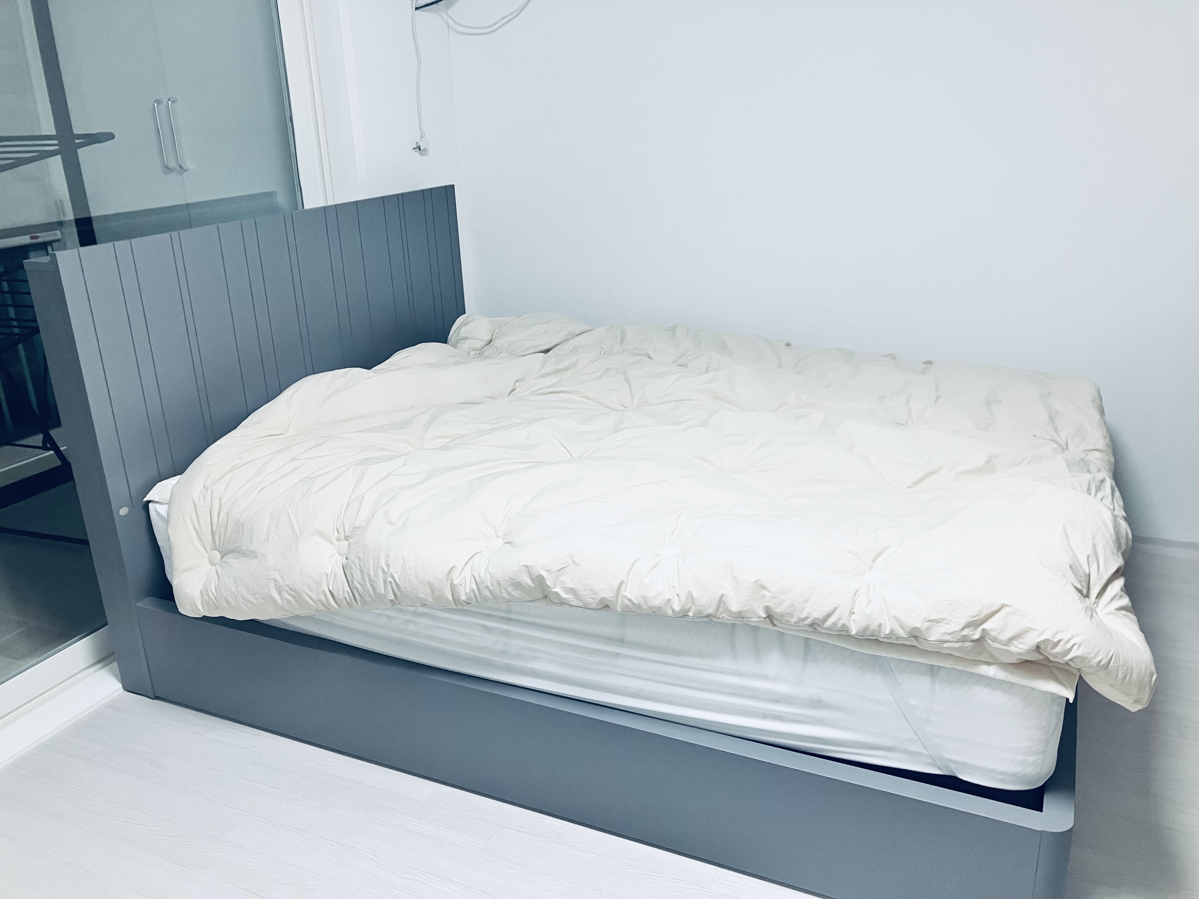 항상 ss 사이즈만 쓰다가 이번에 처음 퀸 사이즈로 구매했는데 엄청 크더라구요. 사이드판넬은 고민하다가 나중에 추가로 사면 되니까 이번엔 포함 안했어요.