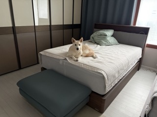 평소 키가 180cm인 덩치 큰 저희 남편이 누워도 공간이 워남 여유로워서 정말 만족스러워요. 특히 저희 집은 대형견을 키우고 있어서 남편이랑 저, 그리고 강아지까지 셋이 같이 올라가서 눕는 경우가 많은데, 셋이 다 누워도 충분할 만큼 넓어서 깜짝 놀랐네요. 이전에는 셋이 누우면 꽉 차고 비좁은 느낌이었는데 확실히 공간이 넉넉하니 수면의 질 자체가 달라진 기분이에요.
