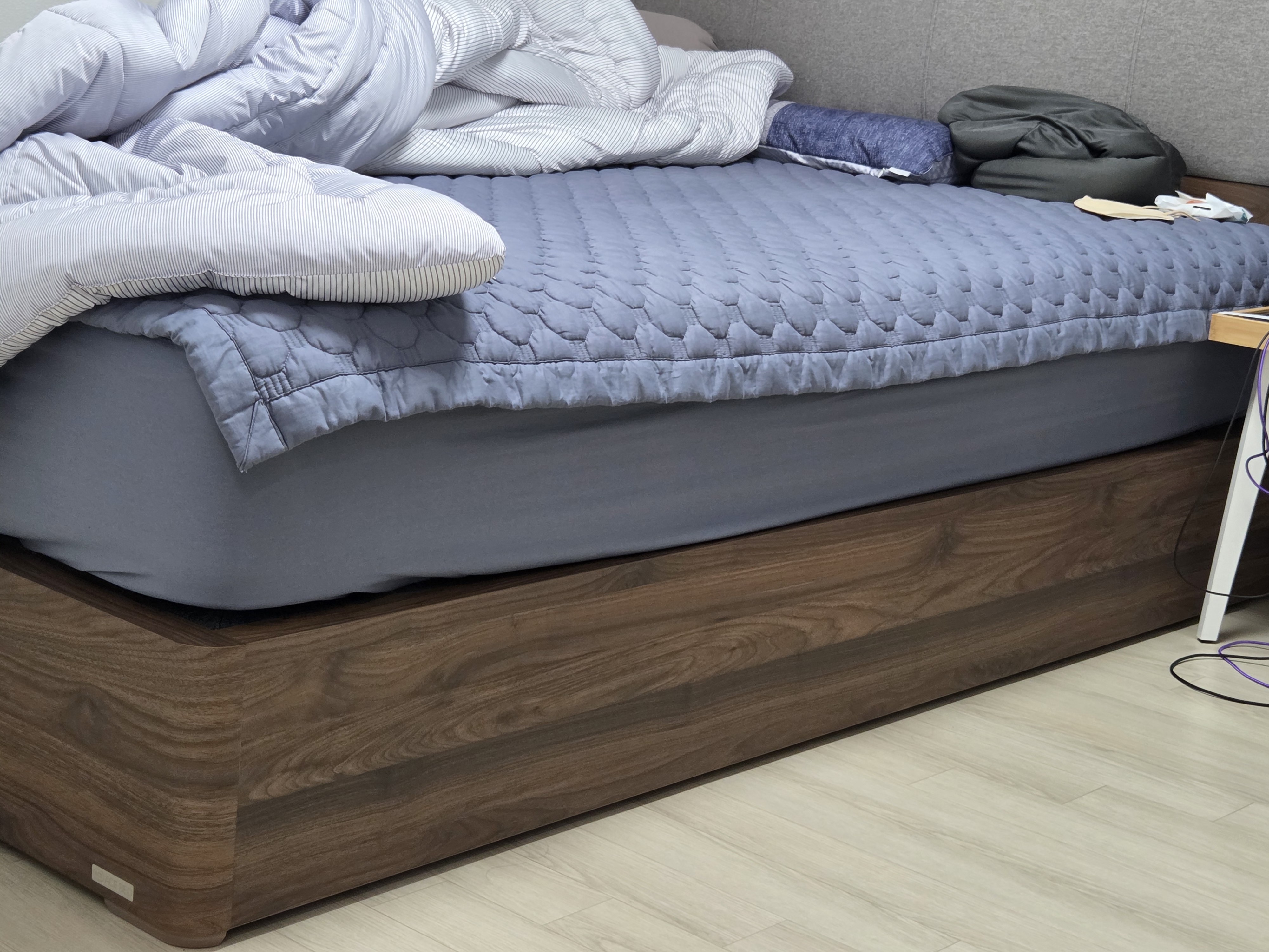 너무 물컹거리지 않고 탄탄히 잘 받쳐주며 사용감은 처음 쓴 침대임에도 불구하고 방금 어제도 쓴 침대 느낌이라 좋았습니다.