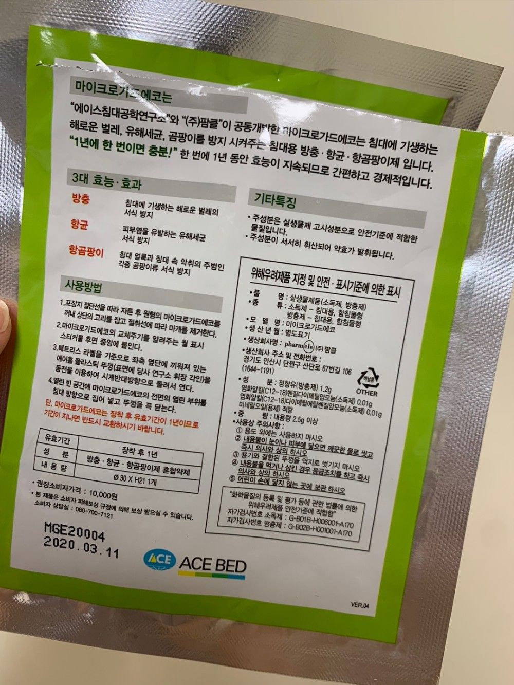 그리고 제일 맘에 드는건 에이스침대에서 하고 있는 마이크로가드에코 입니다.