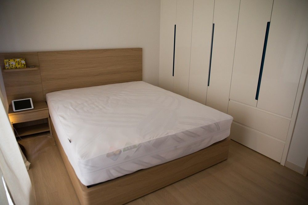 양쪽 다하고 싶었으나 그러면 오른쪽 붙박이 장 문을 열지 못해 ㅎㅎ 한쪽에만 협탁을 놓았습니다.