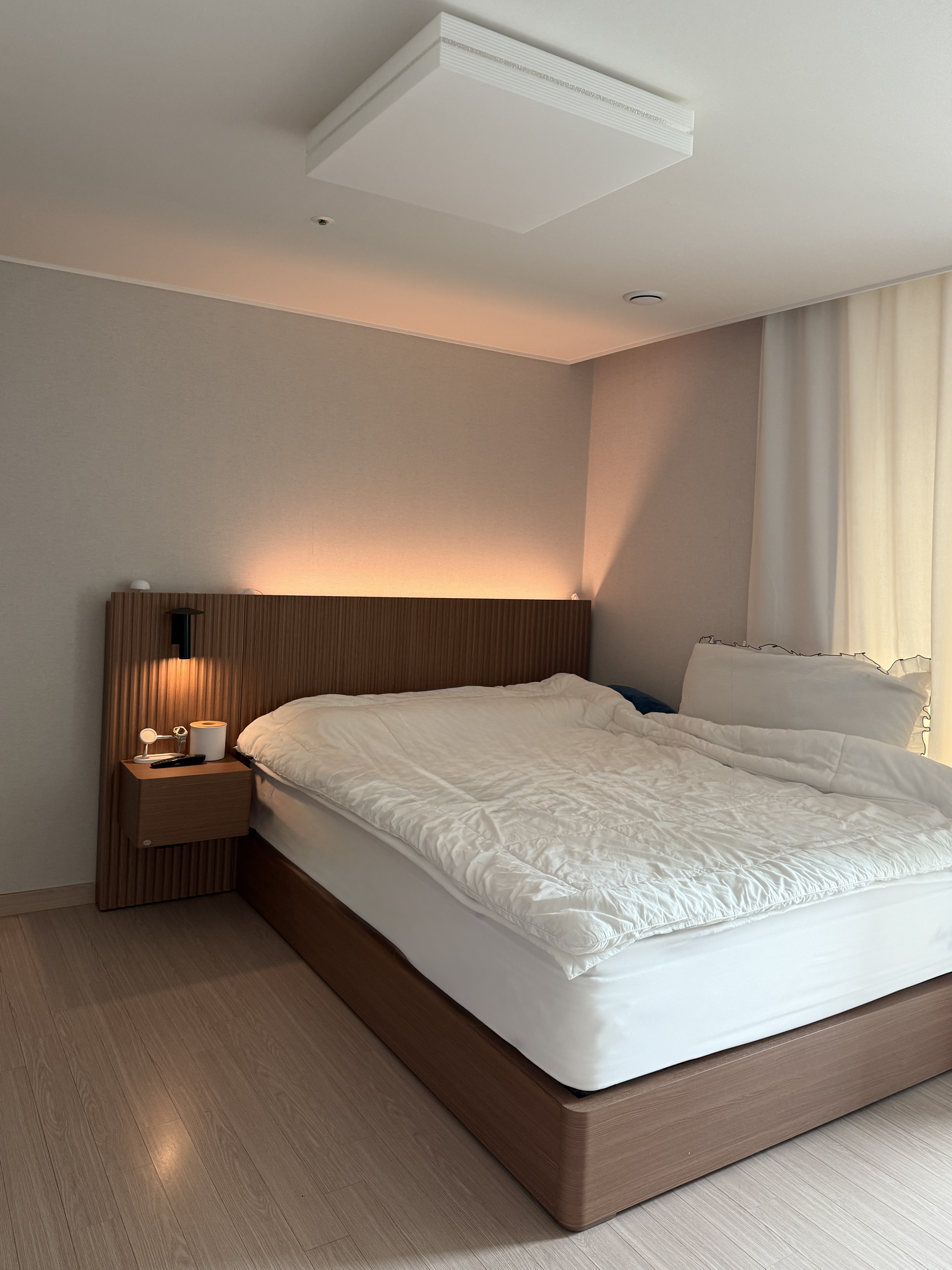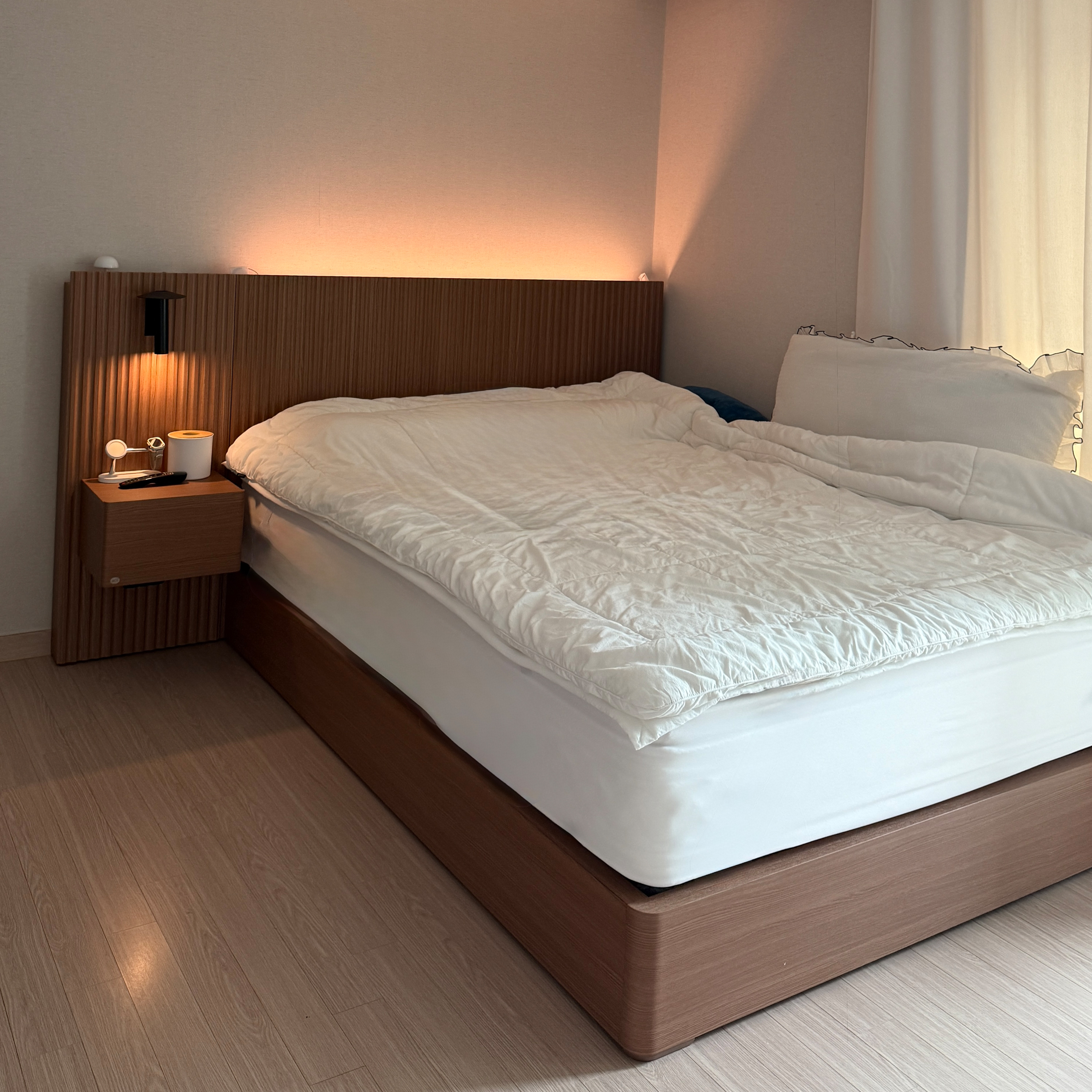 에이스침대에서 새로 침대를 구매했는데, 정말 만족스럽다는 말밖에 나오지 않아요. 처음에는 단순히 디자인이 마음에 들어서 선택했는데, 막상 사용해보니 디자인뿐만 아니라 기능성과 편안함까지 완벽하네요. 우드톤의 헤드보드와 부드러운 조명 조합이 고급스러우면서도 따뜻한 분위기를 만들어 줘서, 침실에 들어올 때마다 기분이 좋아집니다. 침대 프레임도 아주 견고해서 흔들림이 없고, 매트리스는 몸을 부드럽게 감싸주어 숙면을 도와줘요. 예전에는 잠을 자도 피곤이 덜 풀렸는데, 이제는 아침에 일어날 때 개운함이 확실히 달라졌어요.