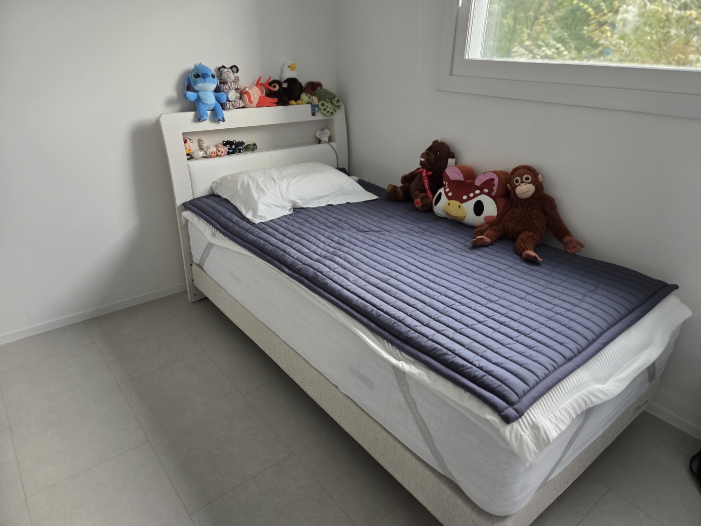 마일드한 월넛 컬러와 가죽질감이 조화로운 침대입니다. 헤드보드에 기대어 앉을 수 있는 기능성과 수납공간이 있는점이 특징으로 헤드보드에 고주파 벤딩 공법이 적용되어 침대에 기대어 앉을 때 편합니다. 또한 라이트 그레이 색상의 스마트 레더가 부드럽고 포근한 느낌을 줍니다. 헤드보드 상부에는 수납공간이 있어 안경, 핸드폰 등의 간단한 물건을 수납하기 편리합니다. 편안한 느낌의 월넛 컬러 우드 결은 고급스러우면서도 내추럴한 침실을 완성시켜 줍니다. 투 매트를 적용하여 에이스 침대만의 안락함을 느낄 수 있습니다.