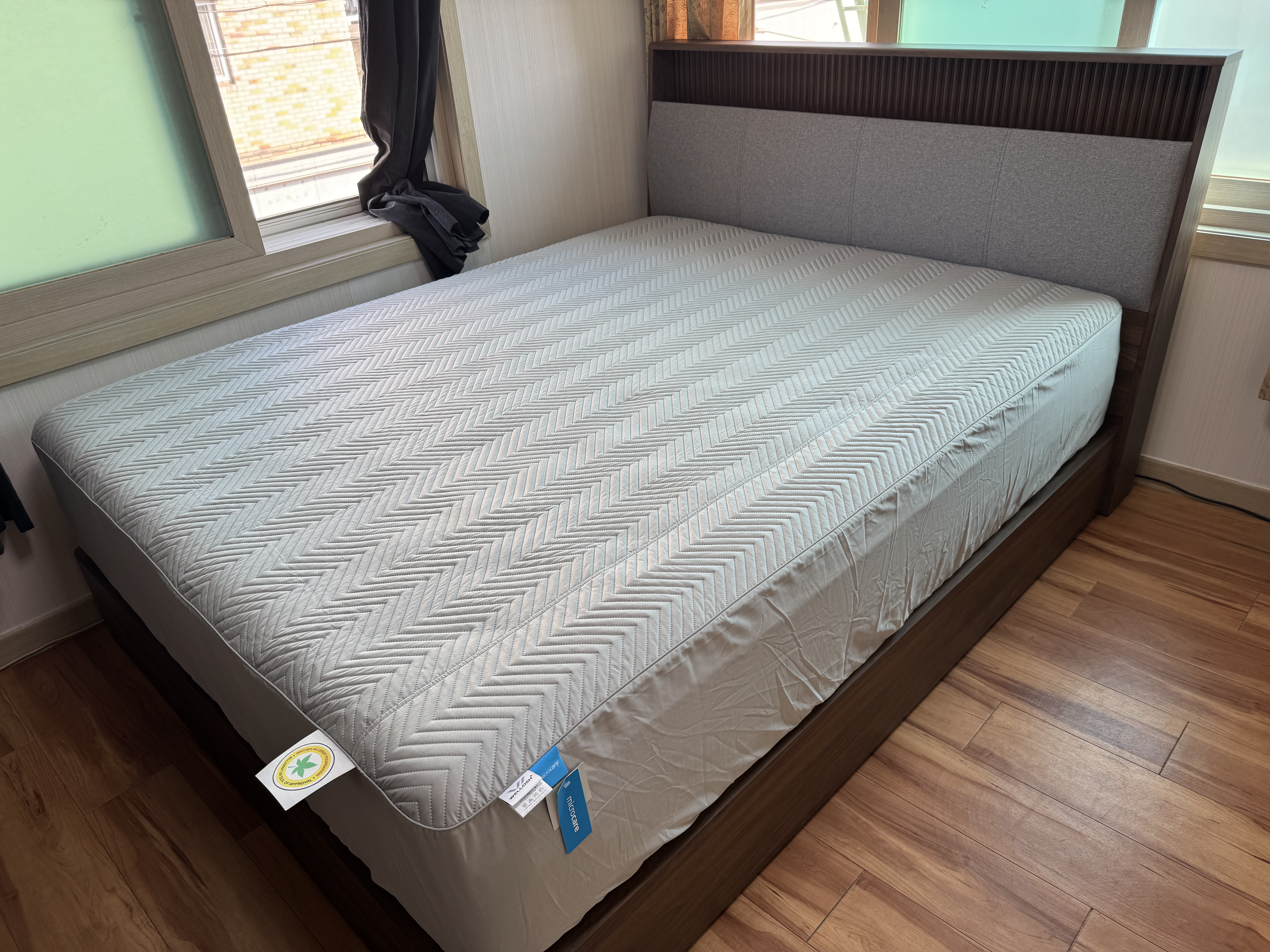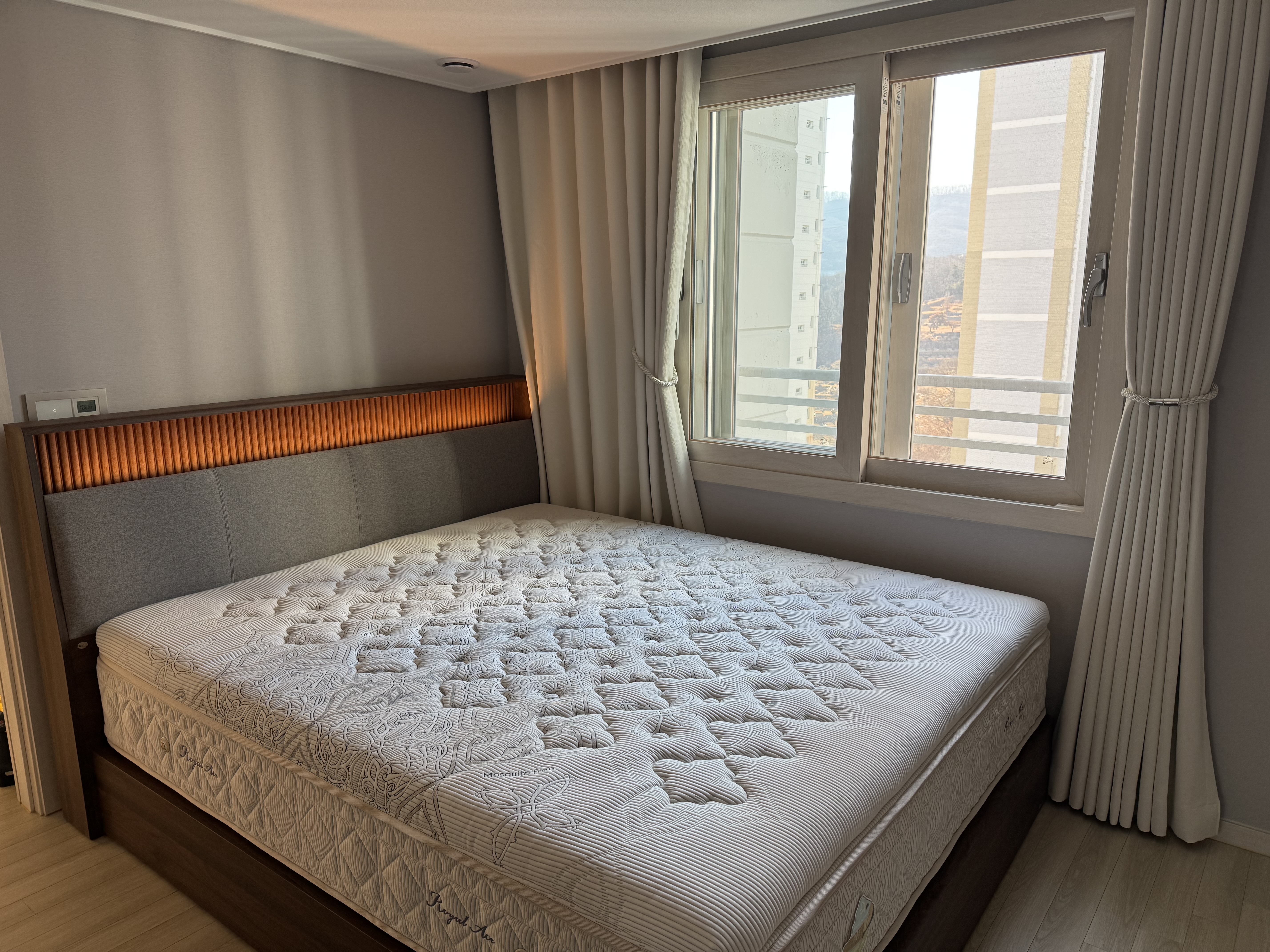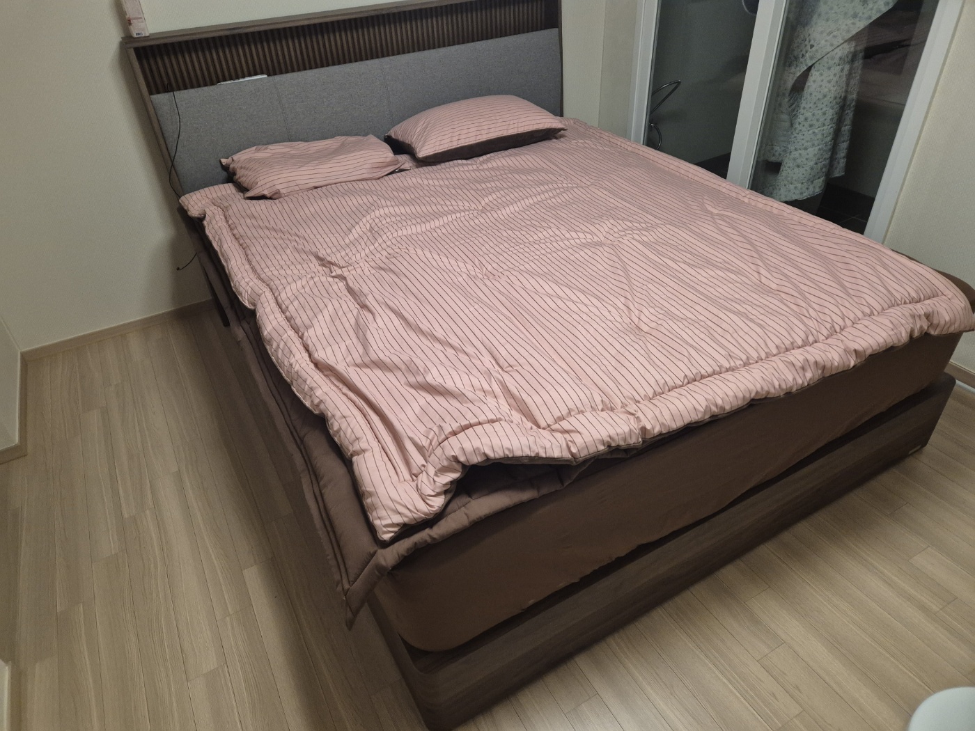 무광 마감의 콜롬비아 월넛 컬러 헤드보드와 바디는 사용자의 침실을 한층 더 차분하고 고급스럽게 연출해 줍니다.